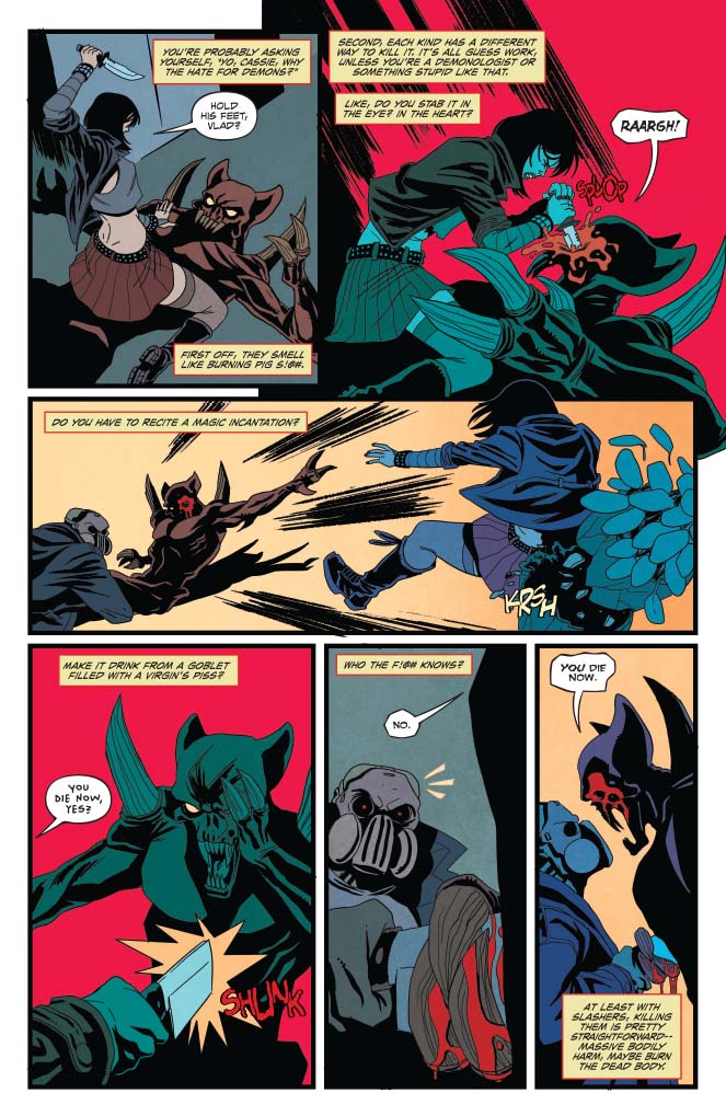 The Blood Red Queen of Hearts continues her quest to win the love of the Mad-god Chaos by sacrificing innocents. Cassie Hack and Vampirella have teamed up to put a stop to it by any means necessary. Including a good, old fashioned baseball bat beating.
