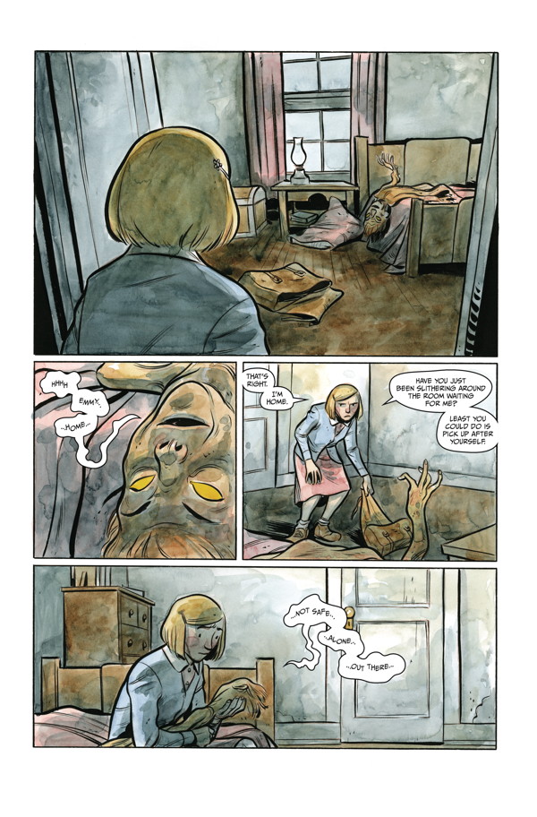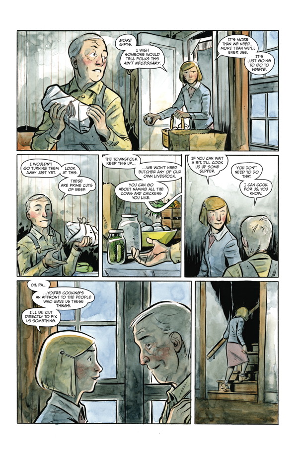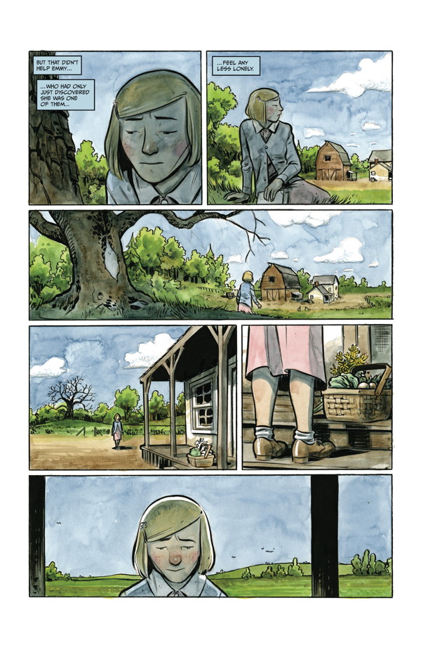 After uncovering Harrow County’s twisted history and her own bizarre connection to the populace, Emmy forges a new and profound connection to the land and its creatures—but a familiar and sinister presence lurks just over the county lines . . .
