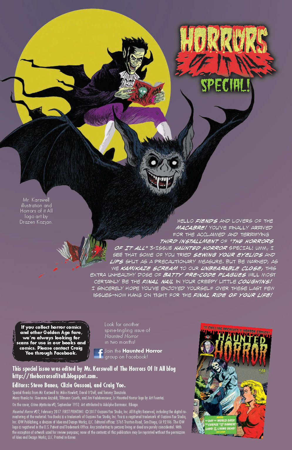 The terrifying third and final installment of THE HORRORS OF IT ALL 3-issue special screams to its corruptible close, as THOIA blogger/horror host, Mr. Karswell unleashes another unhealthy dose of Pre-Code plagues upon the unsuspecting comic book world! This one will be the final nail in your coffin!