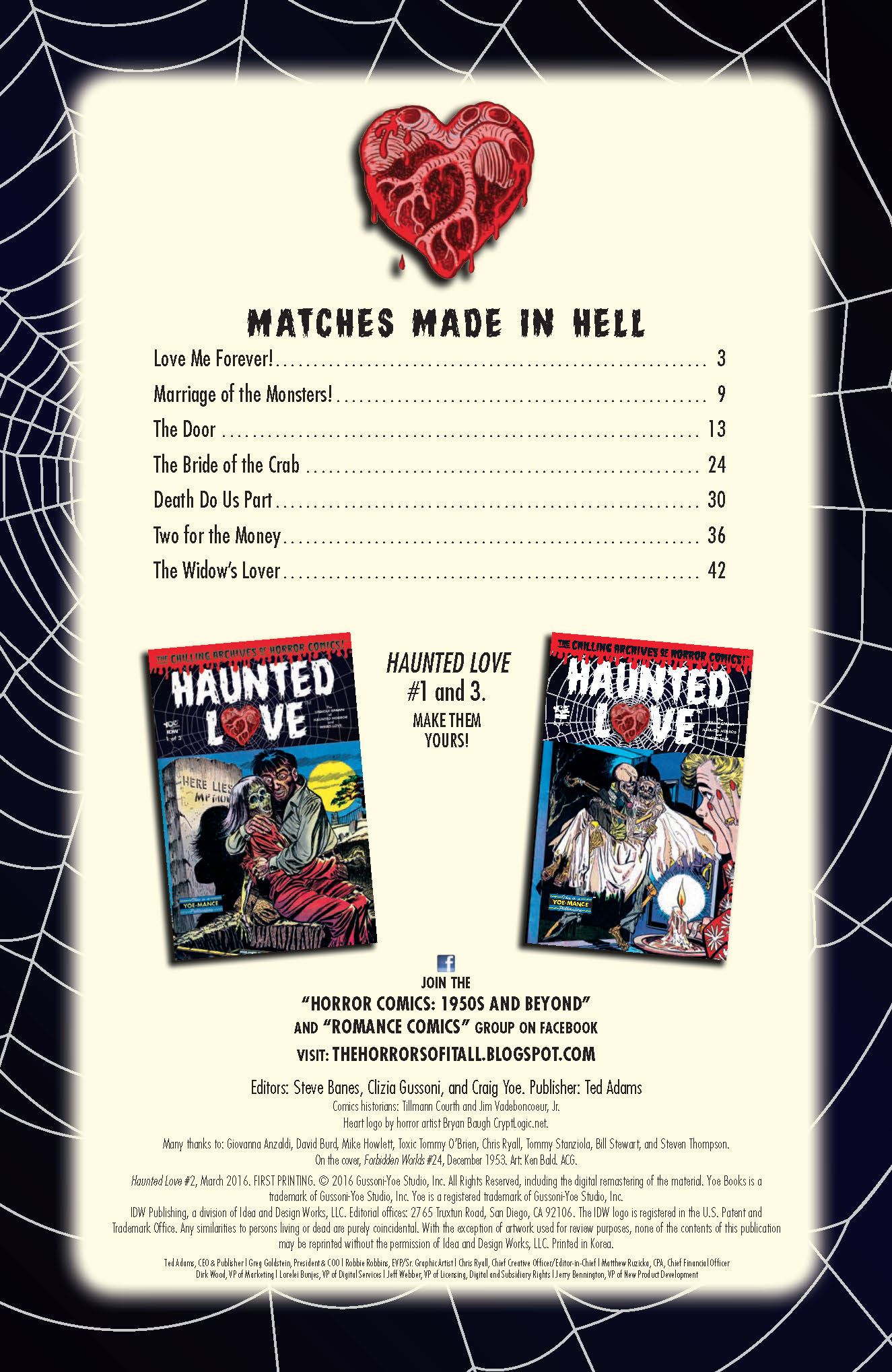 Just when you thought it was safe to crawl back in your corroded coffins, #2 worms its way into your hearts with more awful affairs and creeped-out courtships direct from the crumbling crypt of golden age Pre-Code comics! SEE! Monsters get married! HEAR! The haunting howl of love even AFTER death! SMELL! The eternal stench of a long rotted romance! TASTE! (ummm, do NOT put this comic book in your mouth!) FEEL! The worst case of crabs EVER! HAUNTED LOVE!