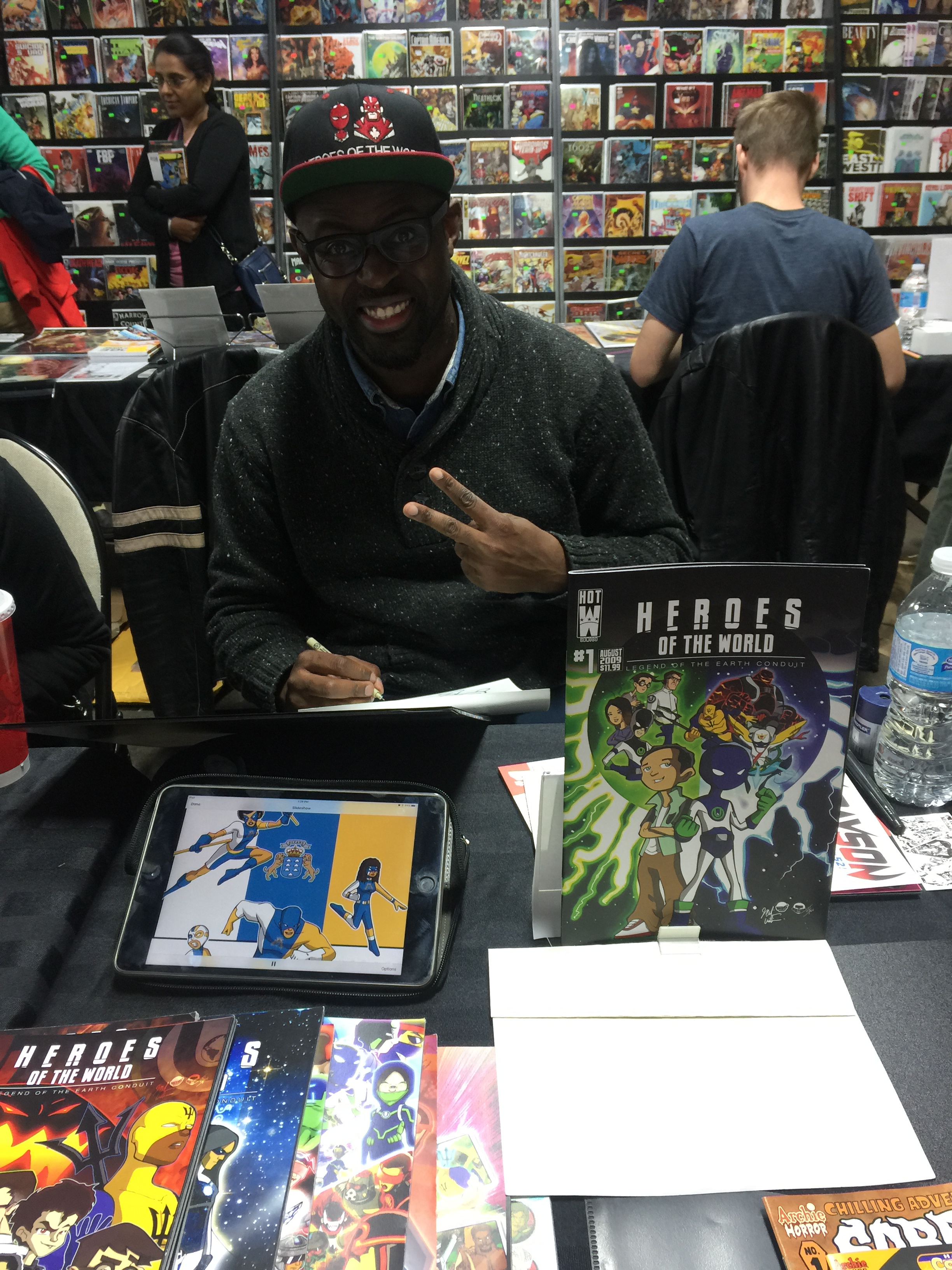 One half of HEROES of the WORLD, Joe Osei Bonsu, was occupied furiously pencilling and colouring multiple requests.