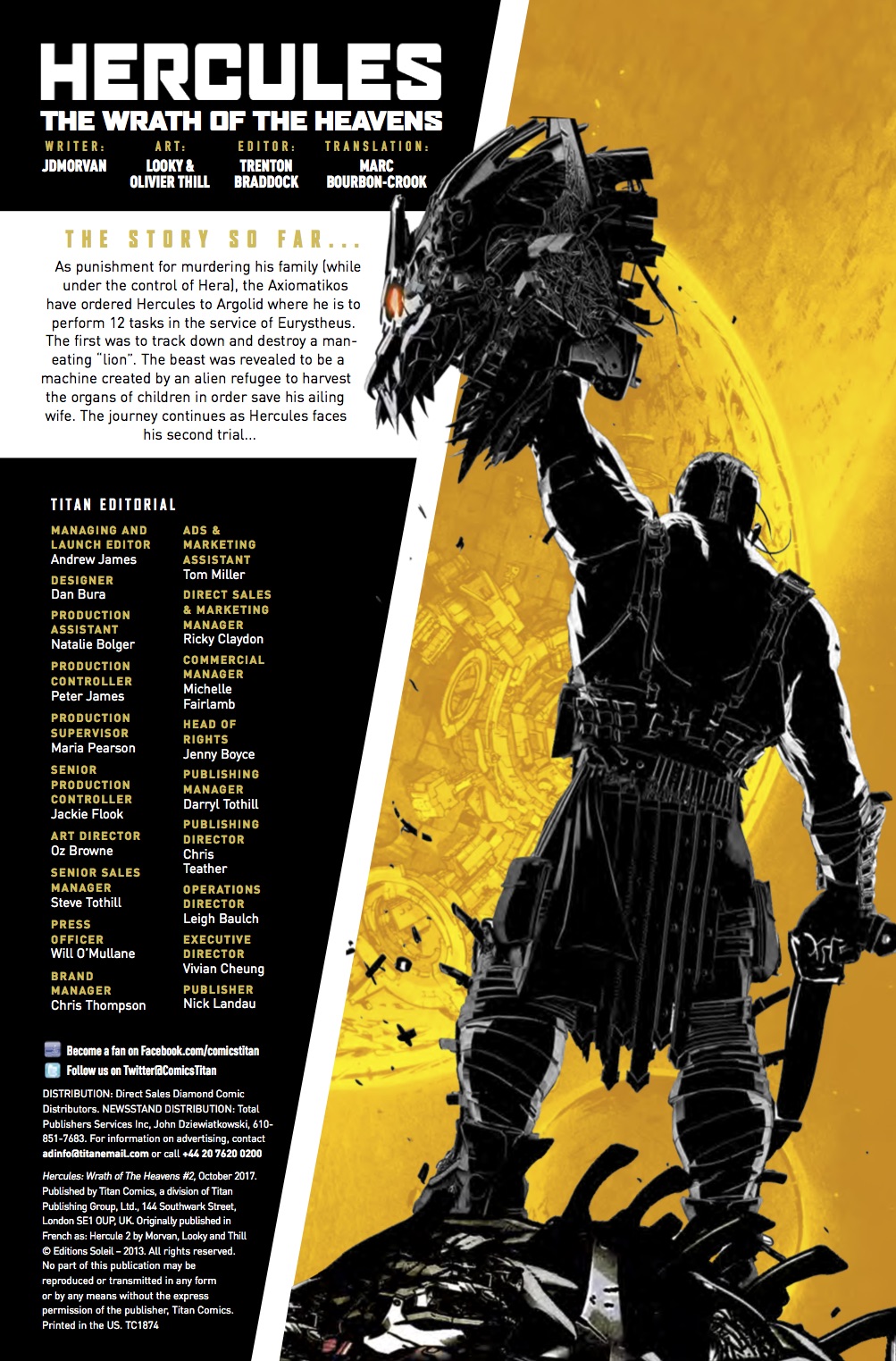 As punishment for murdering his family (while under the control of Hera), the Axiomatikos have ordered Hercules to Argolid where he is to perform 12 tasks in the service of Eurystheus. The First was to track down and destroy a man-eating “Lion”. The Beast was revealed to be a machine created by an alien refugee to harvest the organs of children in order to save his ailing wife. The journey continues as Hercules faces his second trial…