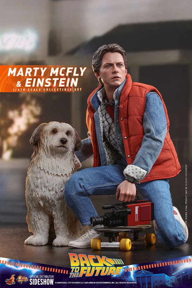 The 1/6 scale Marty McFly & Einstein Collectible Set features: