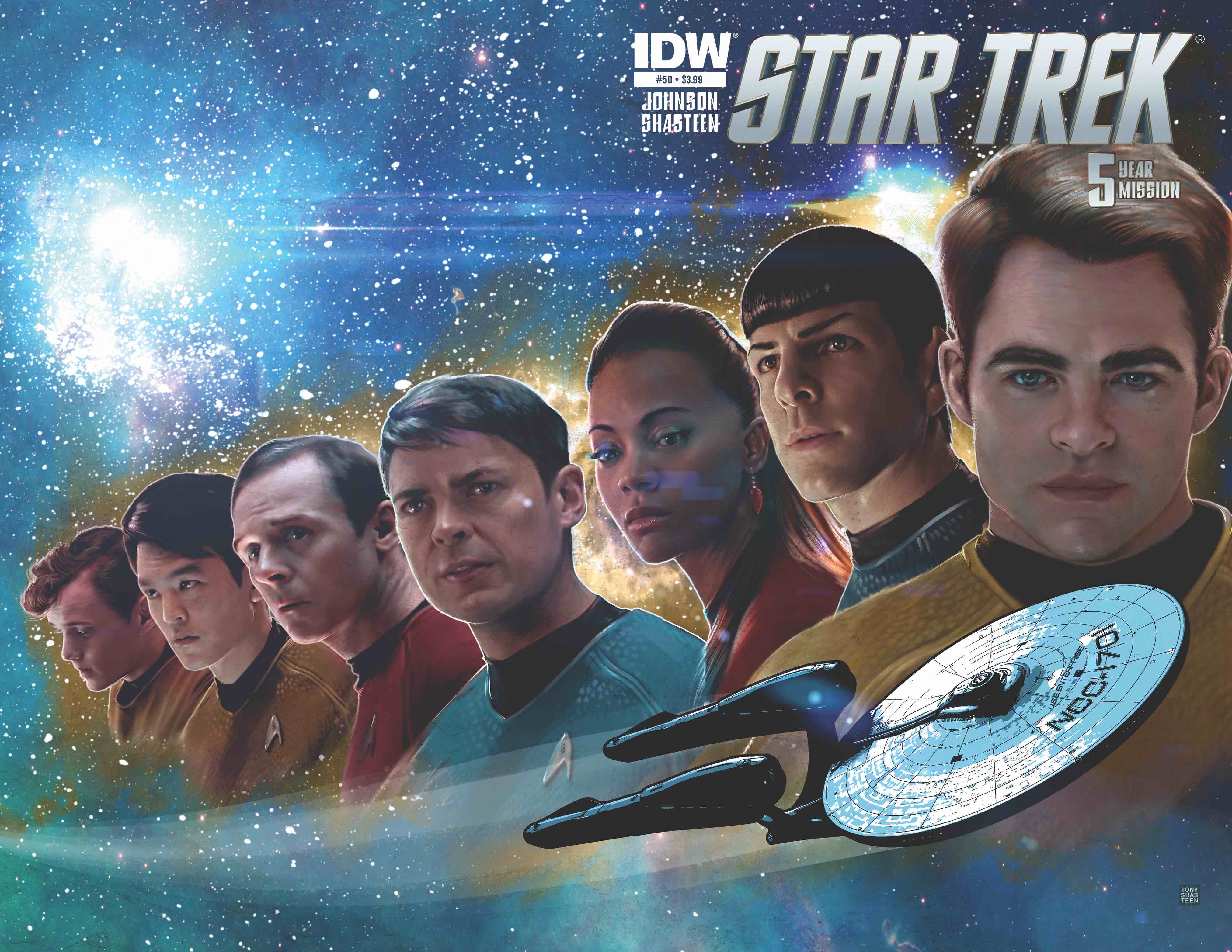 This October will see the release of Star Trek #50, marking one of the longest-running Star Trek comic-book series by any publisher. Mike Johnson continues his stint with this special anniversary issue that kicks off an epic, three-part adventure that will introduce the classic “Mirror/Mirror” storyline into the new film-based universe. Issue #50 will also boast additional bonus content, including behind-the-scenes looks at the entire 50-issue run, along with hints about where the series is going. It will all be surrounded by a gorgeous wraparound cover by series artist Tony Shasteen.