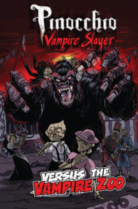 Venture back into the world of the acclaimed Pinocchio, Vampire Slayer in this brand-new adventure from creators Dusty Higgins (Knights of the Living Dead, Miles Taylor and the Golden Cape) and Van Jensen (The Flash, Green Lantern Corps). Pinocchio and his band of slayers are battling the undead across Italy when they come across a zoo and decide to take a break from the hunt. But the animals of this zoo have been infected by the vampiric curse. Now, the gang has to fight its way through hyenas, bats and one damn mean vampire gorilla to survive!