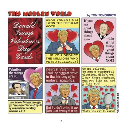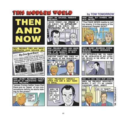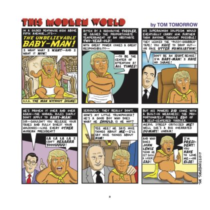Debuting on Tuesday, September 1st, Life in the Stupidverse is IDW’s second softcover collection of Tomorrow’s wildly popular, weekly comic strip This Modern World, which is featured in approximately 80 newspapers across the U.S. This new release follows the success of Crazy is the New Normal which chronicled 2016’s whirlwind Trump/Clinton contest.