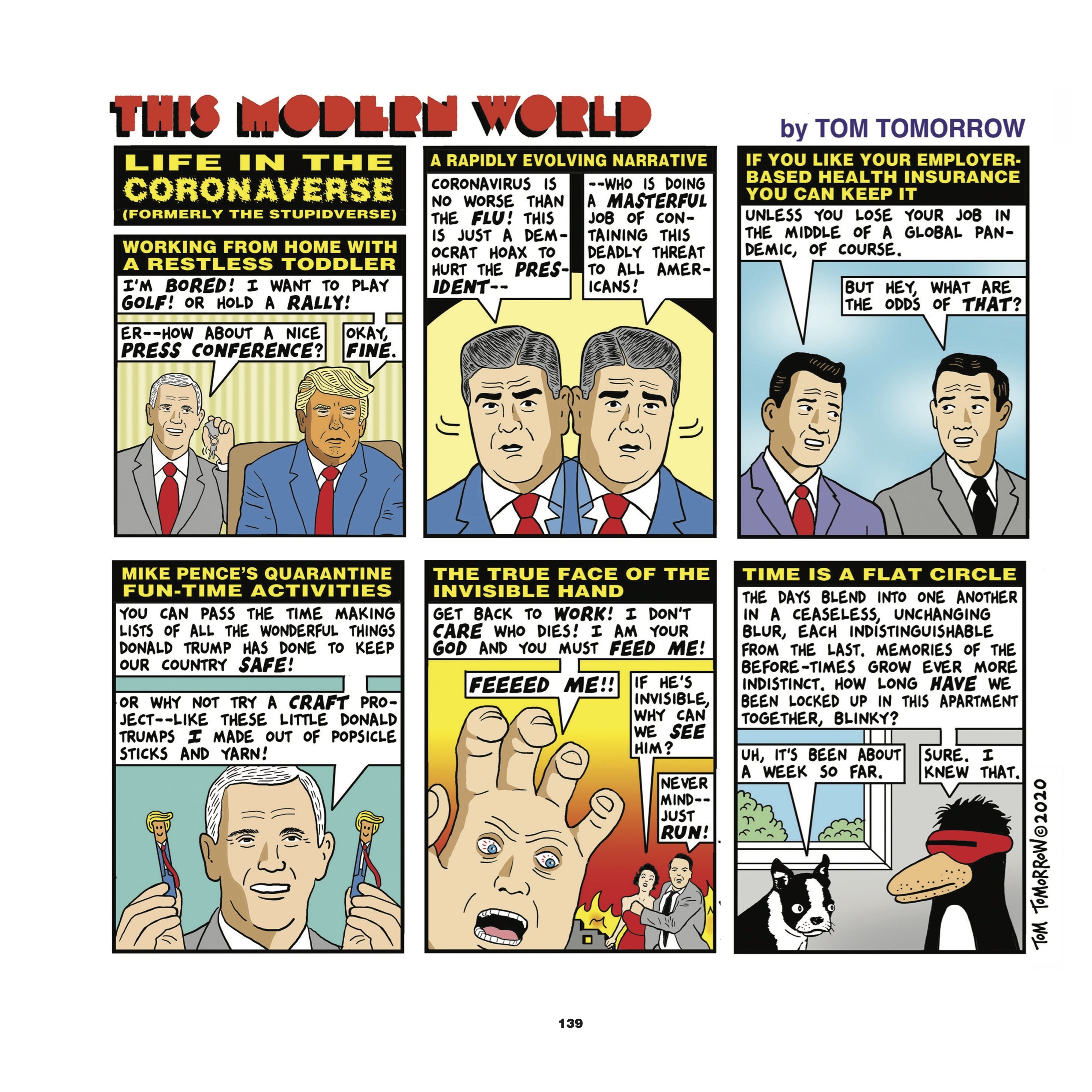 “Friends, it has been a really strange three years,” says Tomorrow in his introduction. “I hope (these cartoons) provide a moment of distraction, and possibly even connection — a sense that you are not alone in all of this. Because none of us are.”
