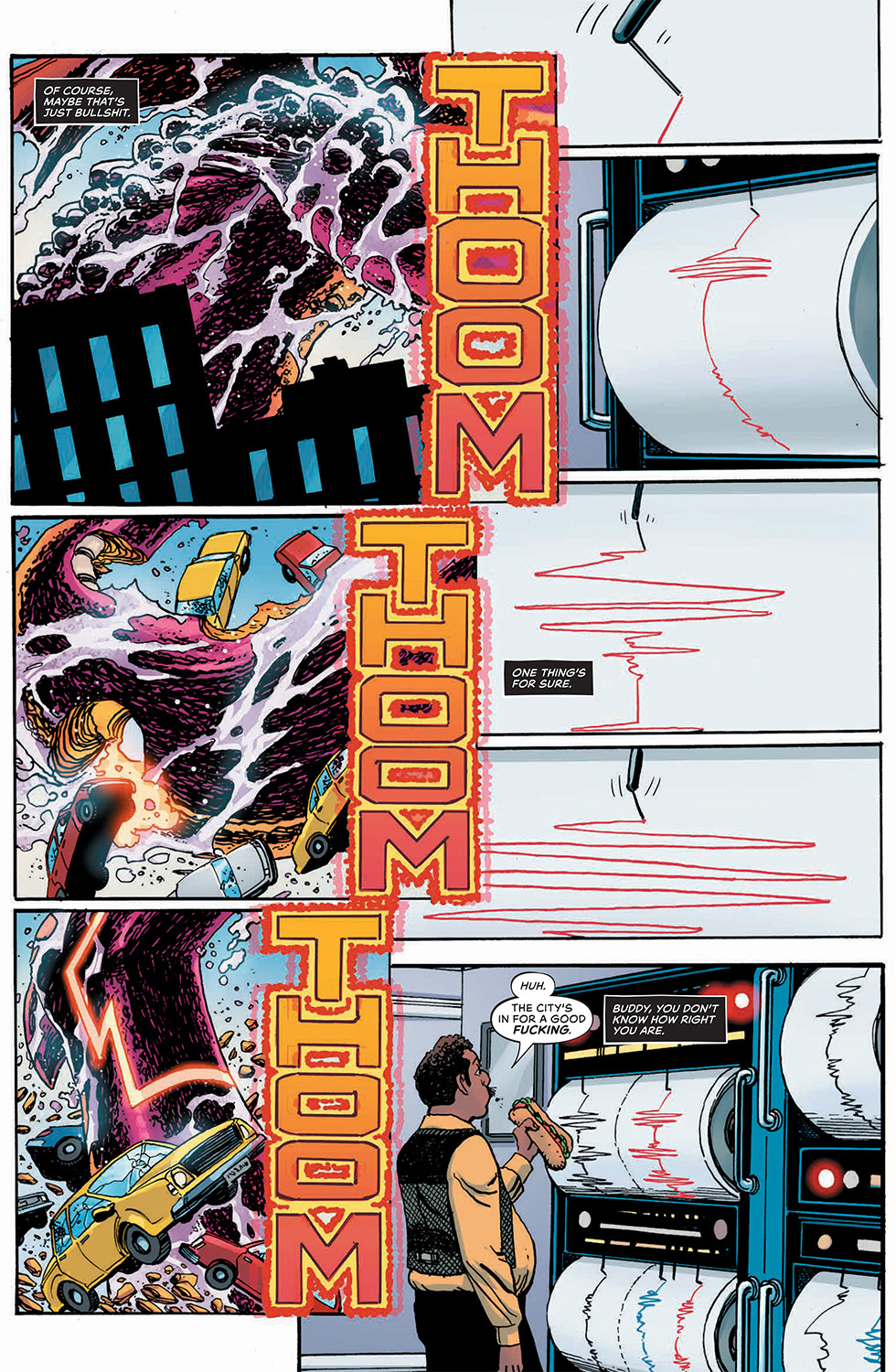 “I recently celebrated ten years of collaborating with Scott, and this is how I thank him,” said Duggan. “Giant Kojkü is a cornucopia of low hanging fruit, and it all works. Scott will make you laugh in one panel and bum you out the next. I never wanted to see a kaiju’s dick either but the last few years haven’t been kind. We’re making the best of it. The Giant Kokjü has it all—laughs, tears, and a beating heart…and some other body parts. Get smashed this April.”