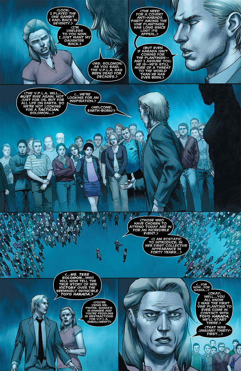 The world is suspended within balances of power. Tense and delicate terms of peace, crisscrossing and humming just below the surface. The Vine plantings, undercover alien spies of a galaxy-spanning race, hold positions of influence all over the planet. Toyo Harada, Earth’s most unstoppable psiot, amassed a bedrock of power through his corporate, political, and super-powered maneuverings. A tenuous détente has long held between the slumbering giants, each with the world held loosely in their grip. Until now.