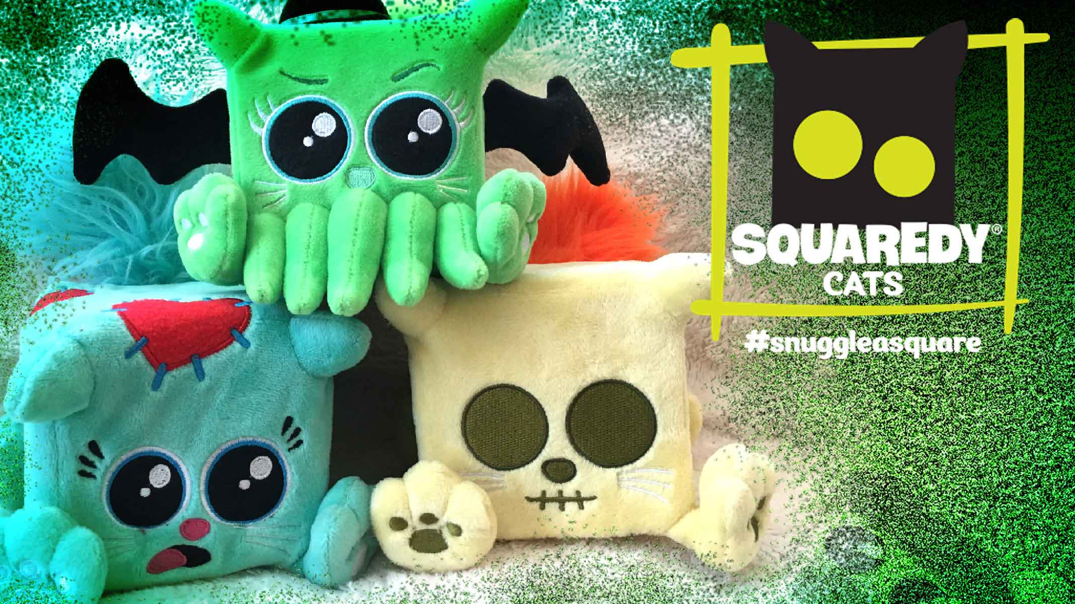 Minneapolis, MN (February 1, 2018) — Toy designers, Kurt Marquart and Elaine de la Mata, co-founders of Monkey Doodle Dandy studio are rebooting their brand of characters called Squaredy Cats. The name, Squaredy Cats is a play on “scaredy cat.” The artists merge adorable, cube shaped, plush kitties with popular, and sometimes notoriously scary characters.