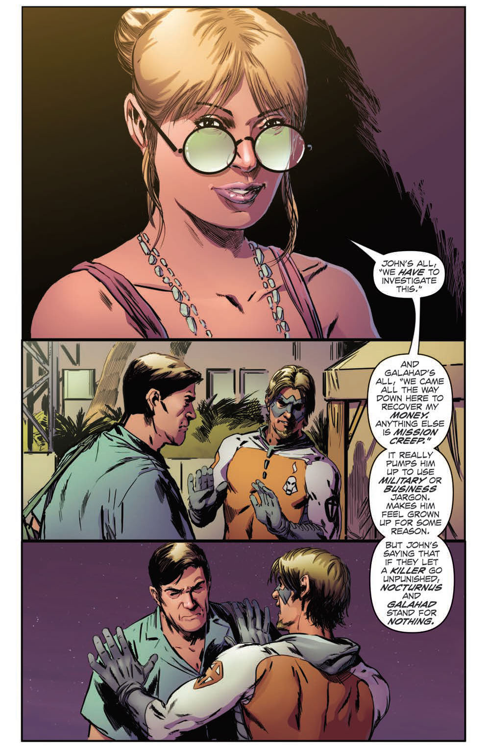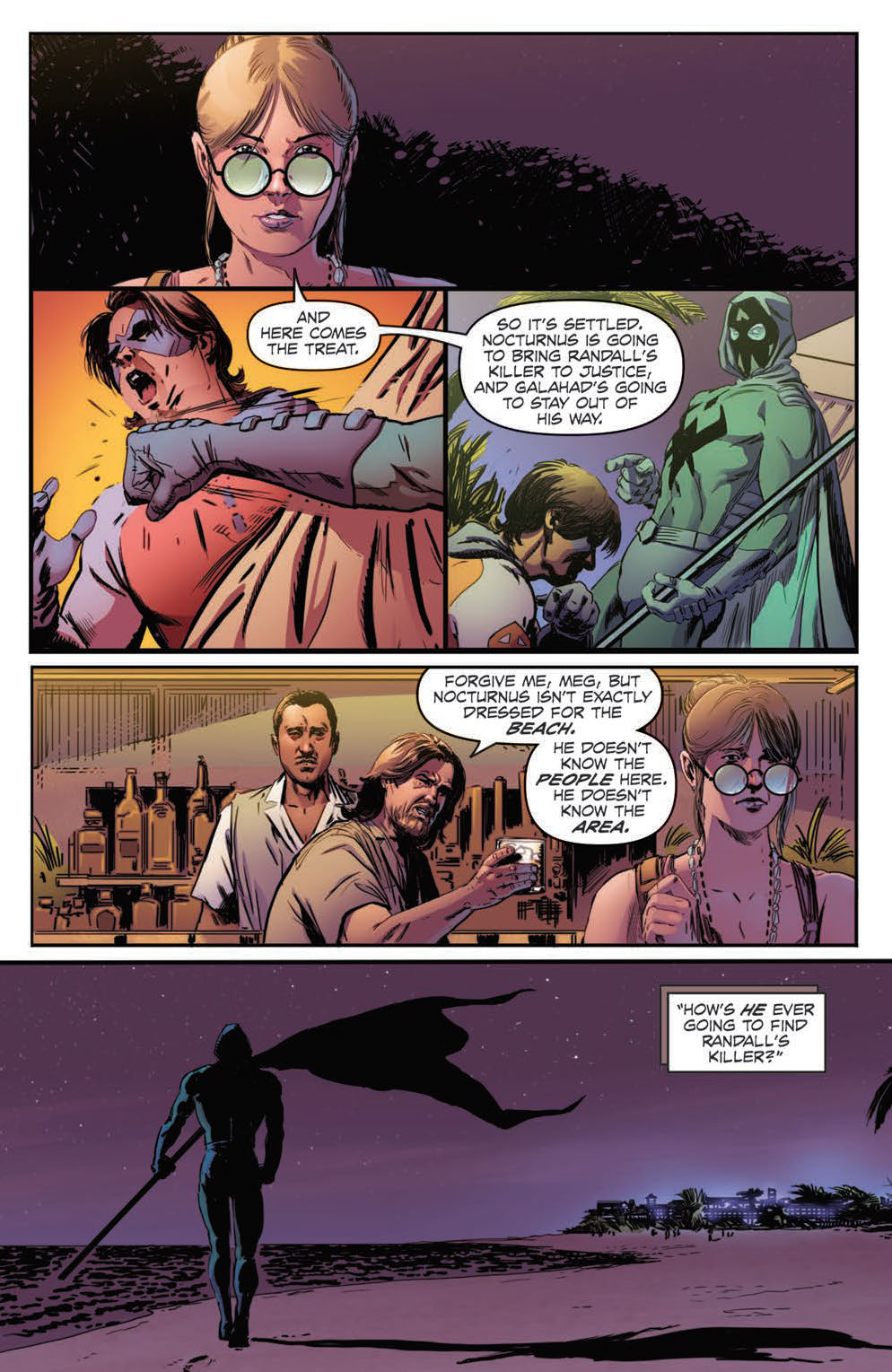 The truce between Nocturnus and Galahad lasted less time than it takes to spell “Galahad.” Now Nocturnus must turn to the local authorities for help in tracking down his nemesis—but they’ll have to lower their guns first!