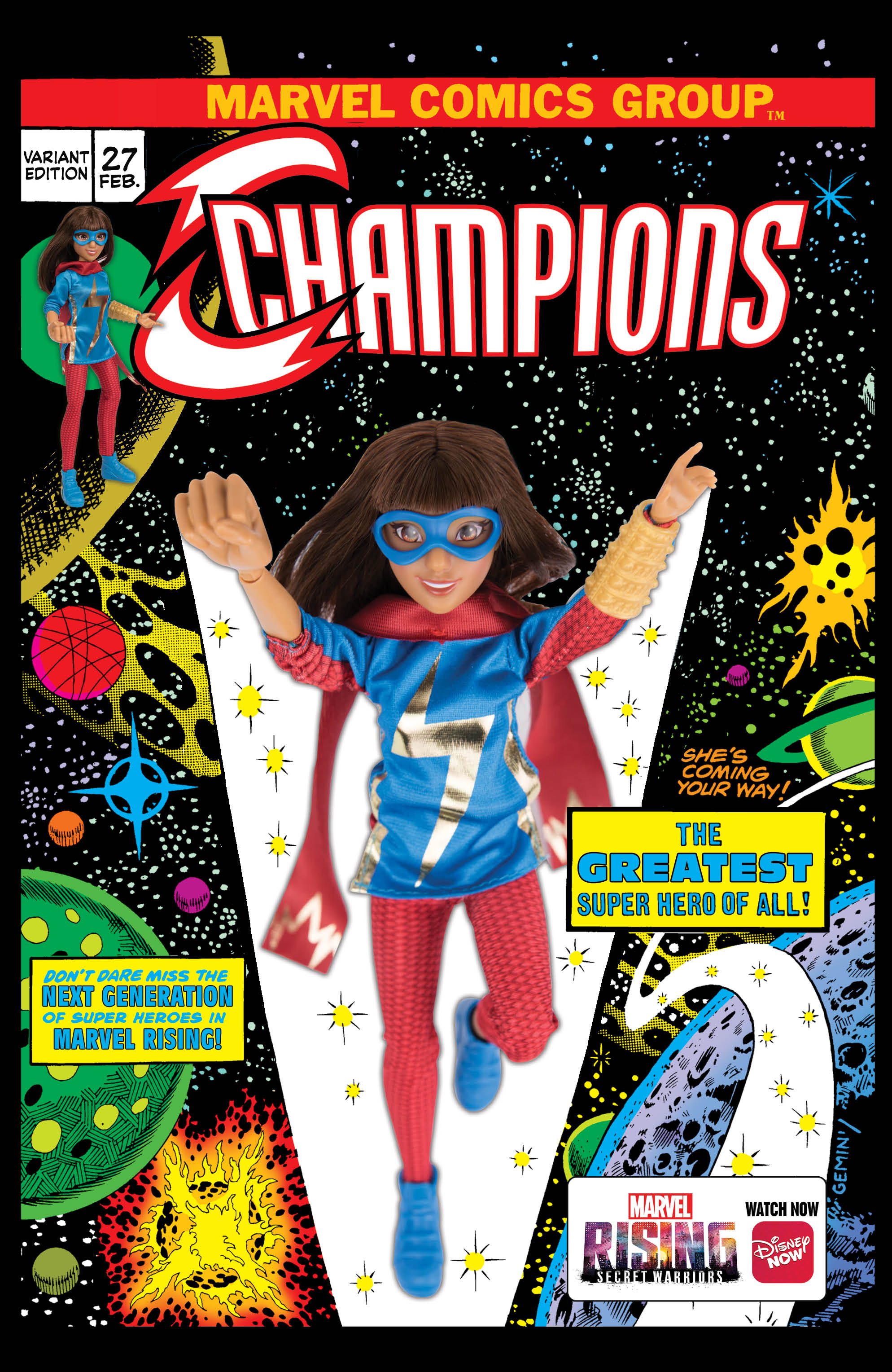“These covers are such a wonderful way of celebrating Marvel Rising while honoring the legacy of the great Marvel heroes that came before,” said Sana Amanat, Marvel’s VP of Content and Character Development. “They’re a true testament to the vastness of the Marvel Universe and the incredible way they can come to life with these amazingly awesome Hasbro action dolls. I wish I had these when I was a kid!”