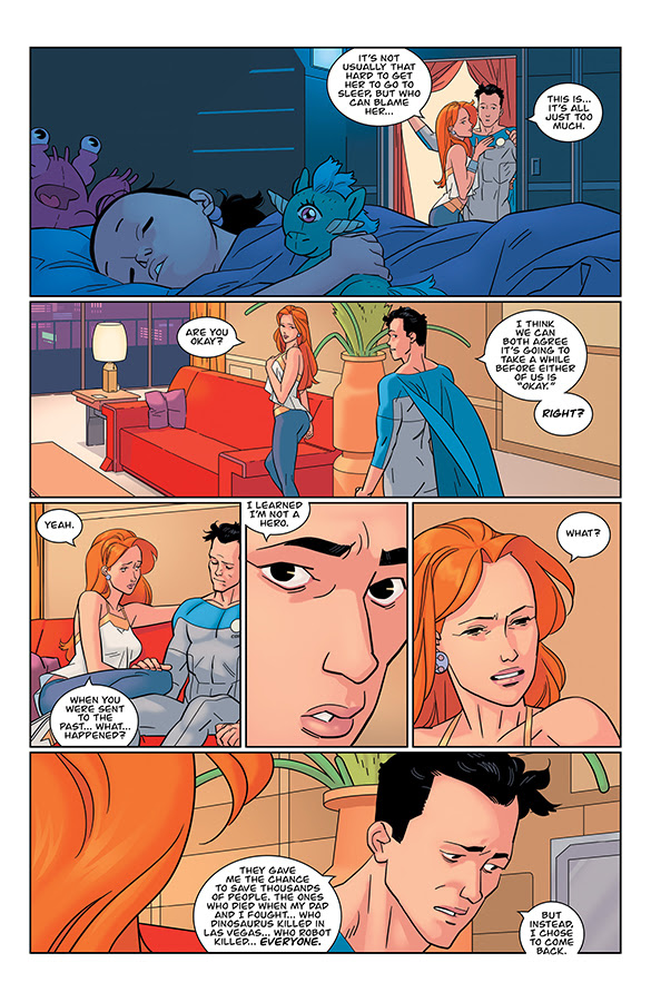 In INVINCIBLE #127, Mark has returned from the past… to a very different future. Now he has to pick up the pieces of his life and try to put them back together.