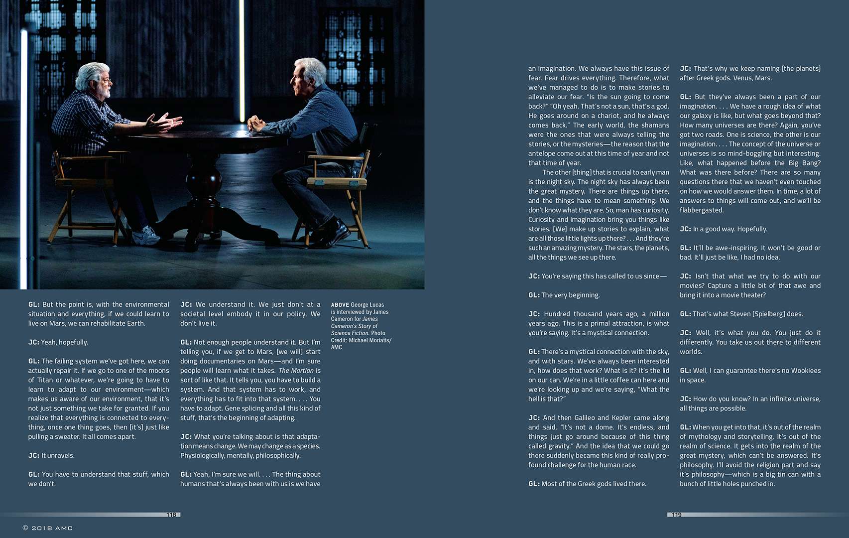 For the show, James Cameron personally interviewed six of the biggest names in science fiction filmmaking — Guillermo del Toro, George Lucas, Christopher Nolan, Arnold Schwarzenegger, Ridley Scott, and Steven Spielberg — to get their perspectives on the importance and impact of the genre. This book reproduces the interviews in full as the greatest minds in the genre discuss key topics including alien life, time travel, outer space, dark futures, monsters, and intelligent machines.