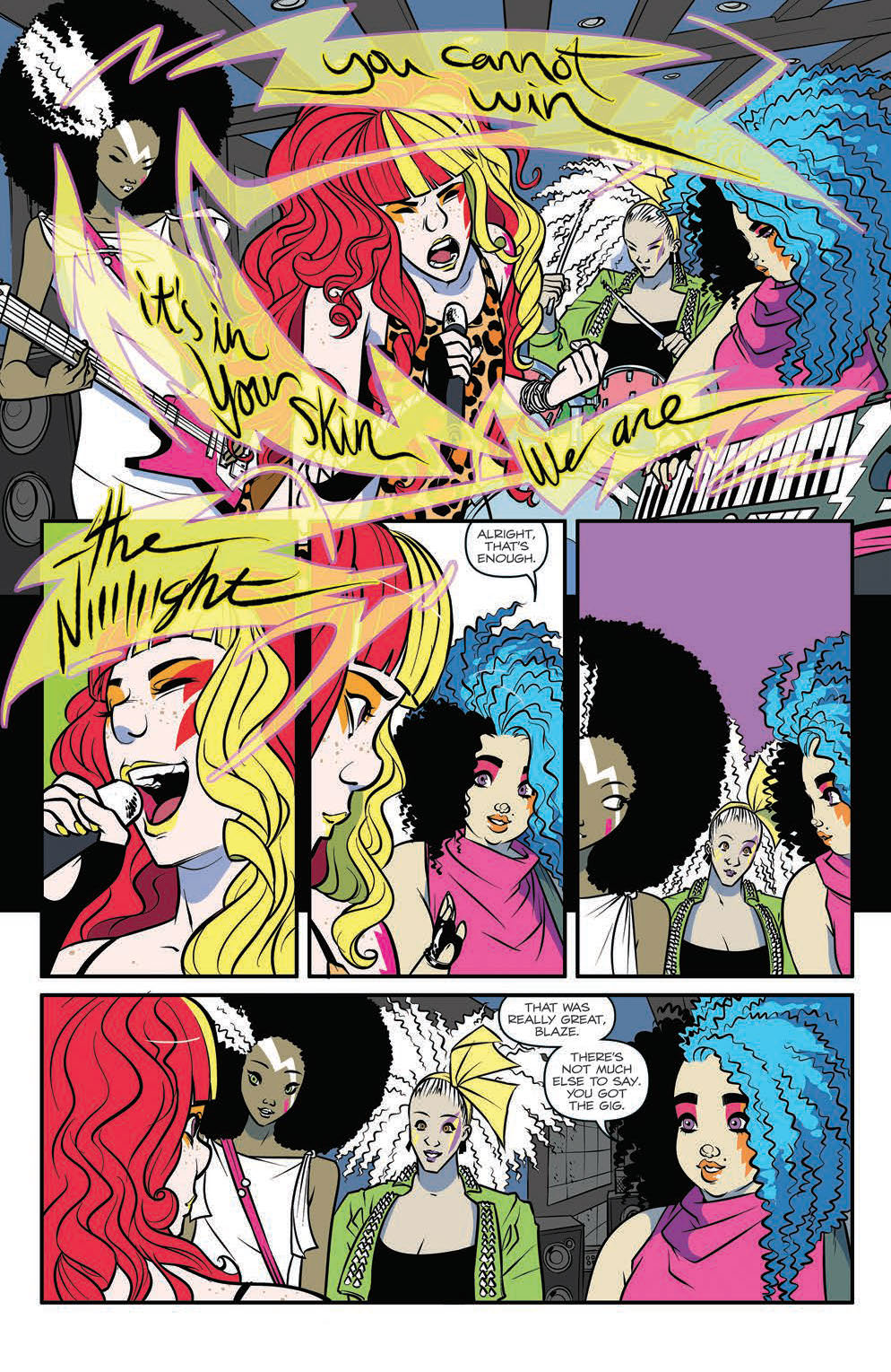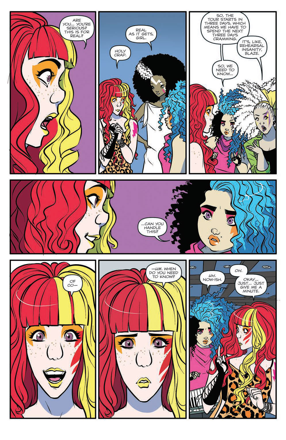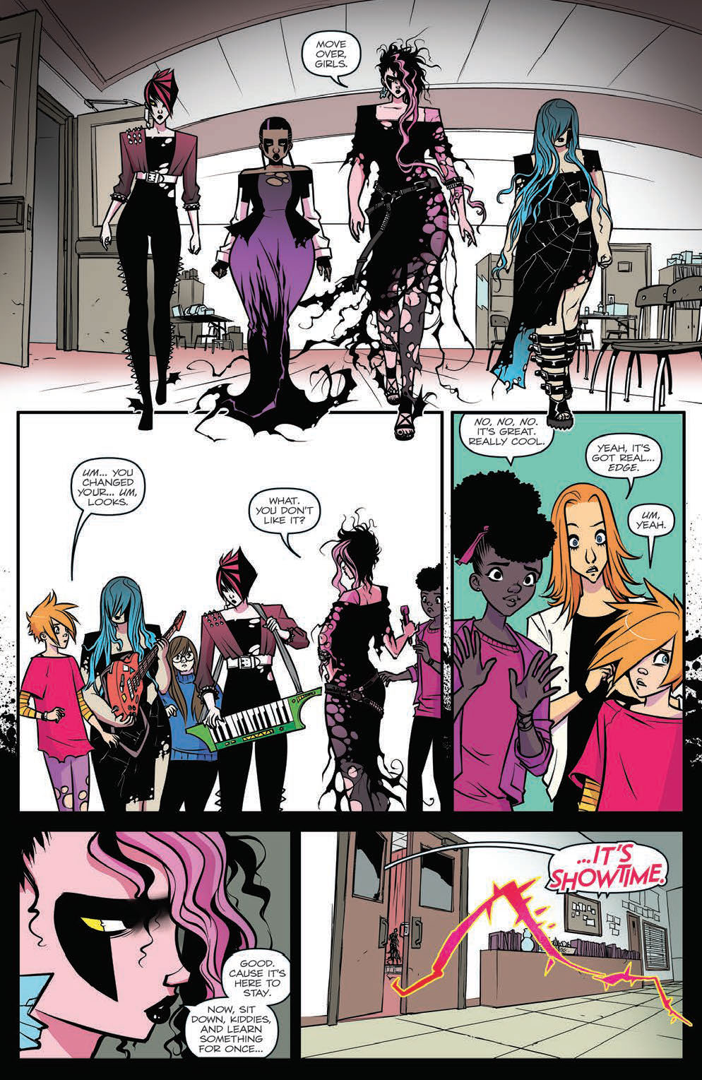 DARK JEM—PART 2! Something’s making SYNERGY go haywire—and it spreads to JEM AND THE HOLOGRAMS just as they gear up for their biggest challenge yet—touring with THE MISFITS! Meanwhile, THE MISFITS introduce their new lead singer… BLAZE! And just wait until PIZZAZZ finds out!