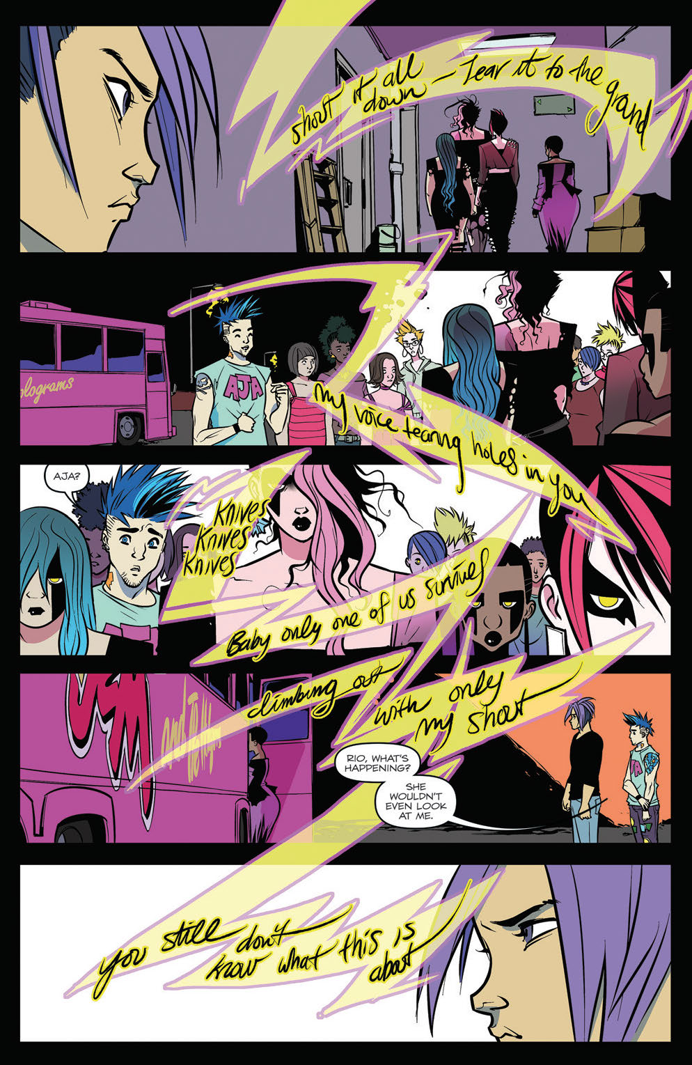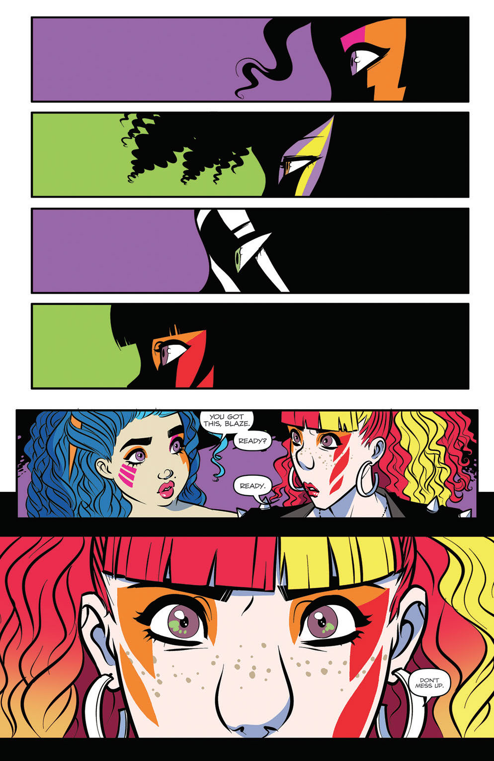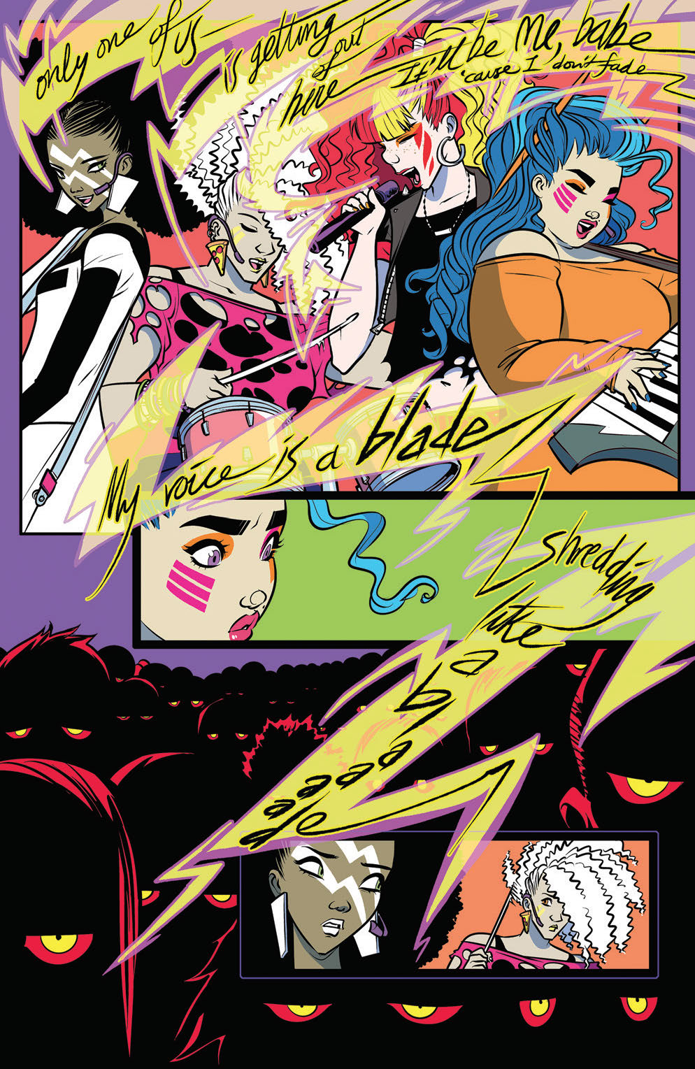 DARK JEM! Not only are JEM AND THE HOLOGRAMS not themselves but whatever is infecting them is now spreading to others every time they play. JERRICA, AJA, SHANA, and KIMBER band together—but will they be forced to destroy SYNERGY to save the world from the DARK JEM sound. Meanwhile Pizzazz makes plans to get back her band… at any cost!