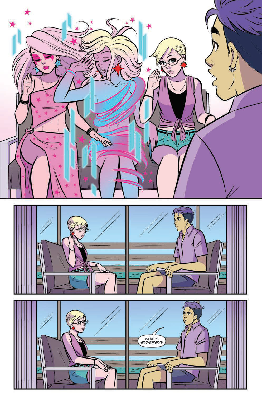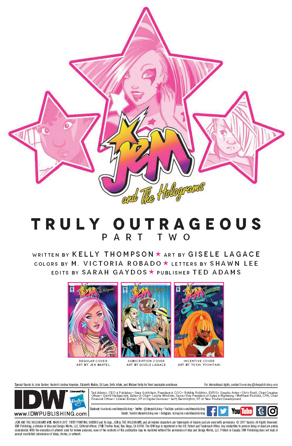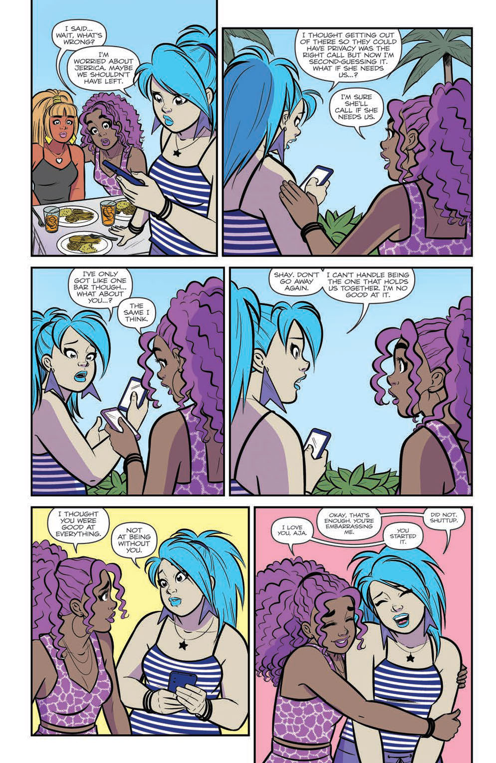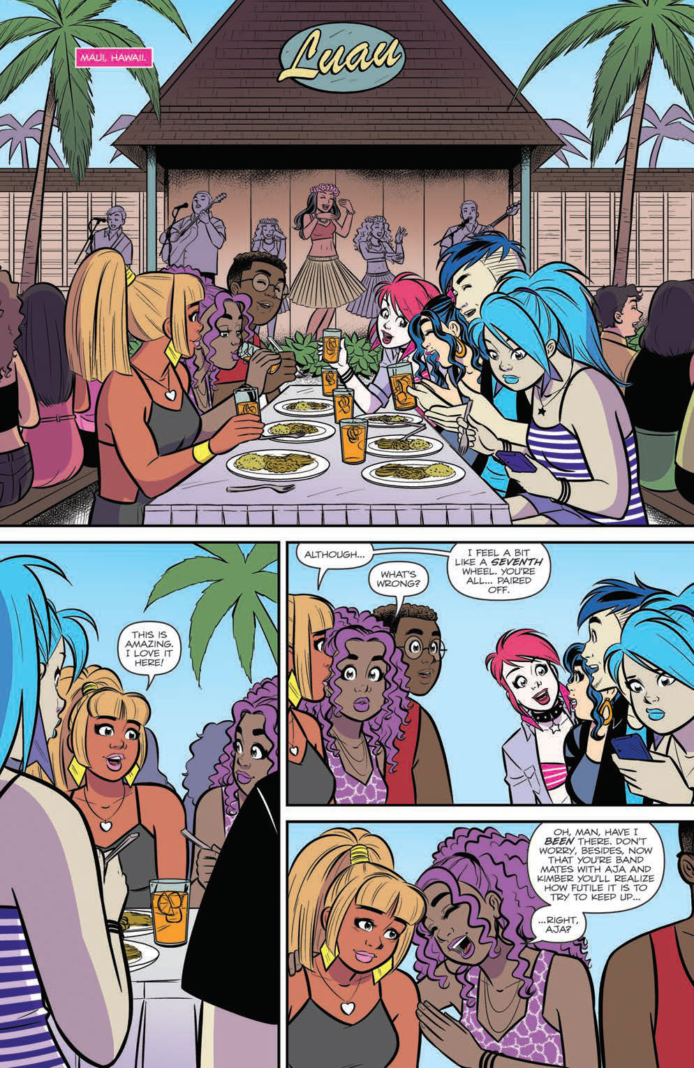 Truly Outrageous Part Two! In Hawaii The Stingers plot against Jem and The Holograms for “stealing Raya” as Riot tries to win back Jem. Meanwhile Jerrica must reconcile the two people she has become – Jem and Jerrica – and that might just mean telling Rio the truth!