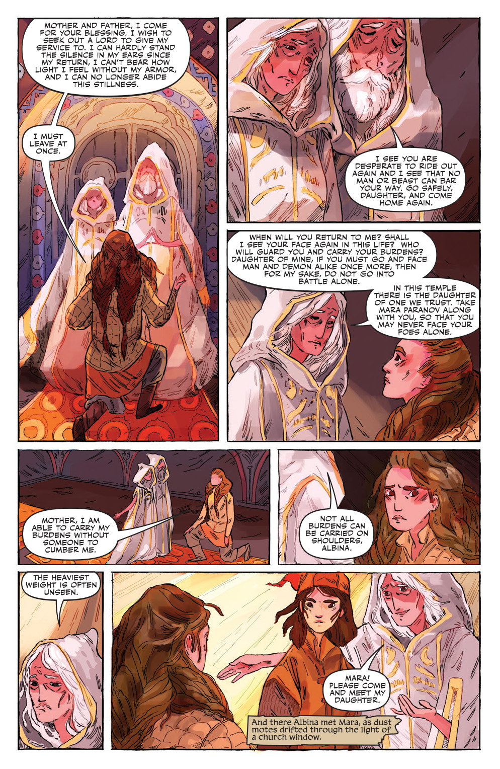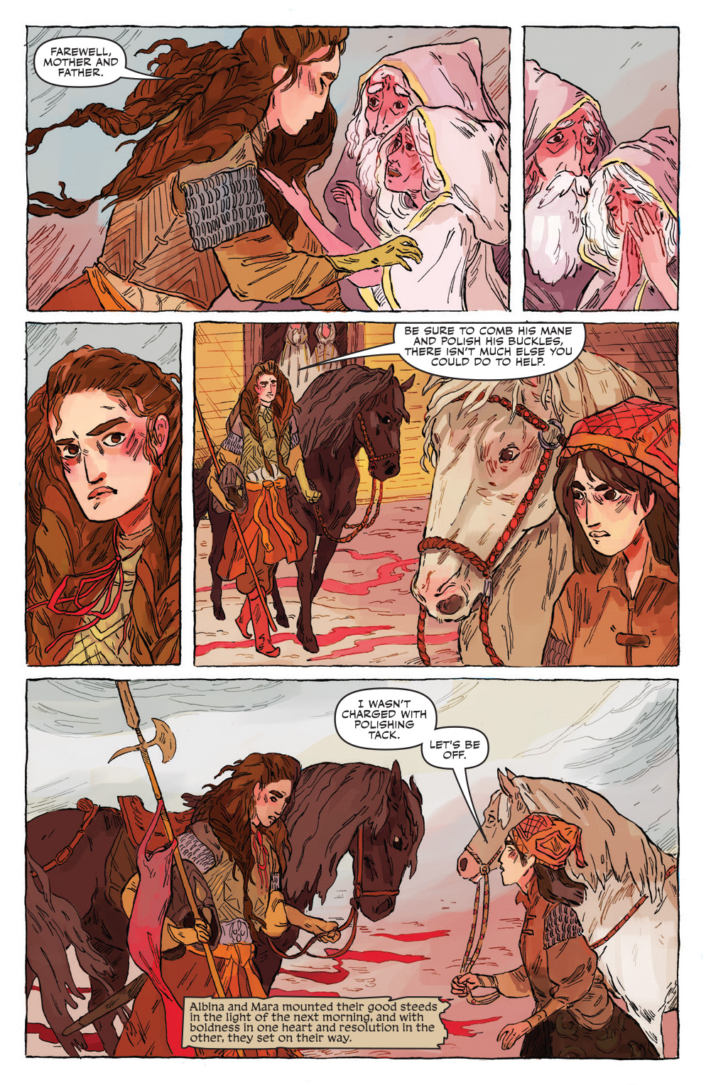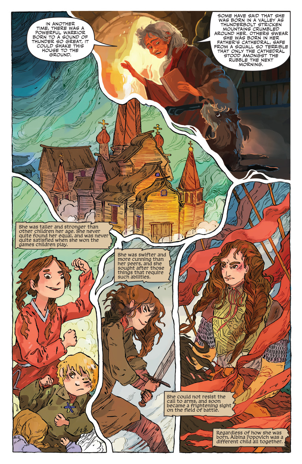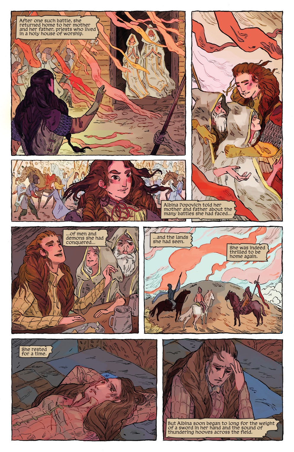 Hannah Christenson (Mouse Guard: Legends of the Guard) presents “Albina,” the gender-swapped retelling of the Russian folktale wherein a legendary warrior and her servant face the three-headed dragon Tugarin Zmey.