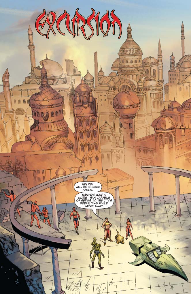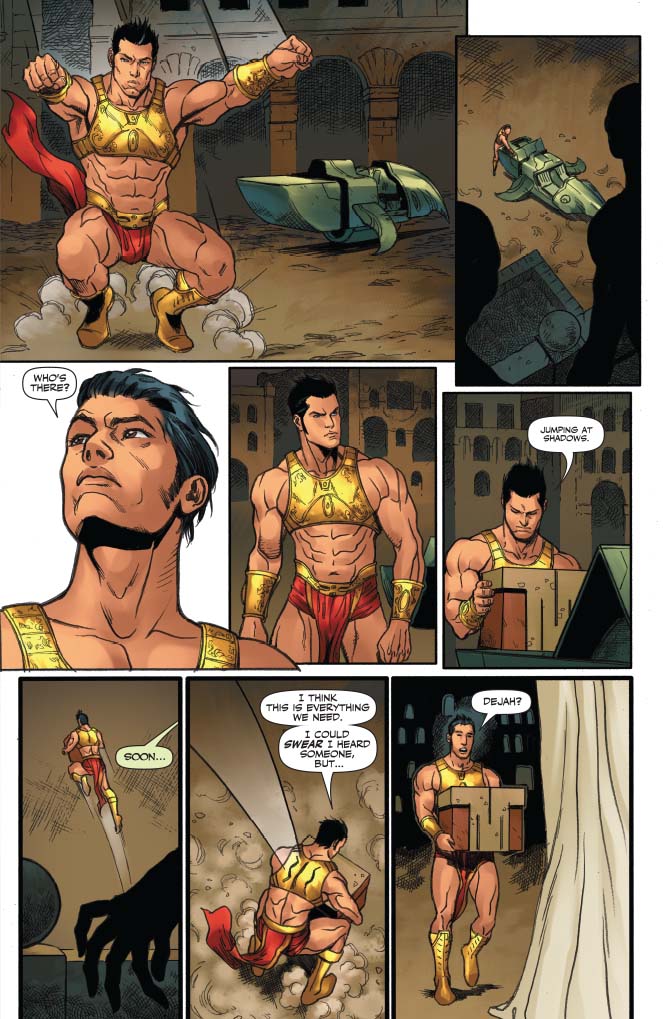 John Carter, a hero of the American Civil War now at home on Mars, has survived the Kahori invasion alongside his beloved princess, Dejah Thoris. As the capital city of Helium rebuilds, the loving couple leave for the outlands to recuperate… but rest and relaxation are not in their future. All across Barsoom, sinister forces conspire against them. From savage Warhoon raiding parties to the artificial (and lovelorn) beast known as the Hormad, from the god-like sand spirit Jartak to the last of the world-conquering White Martians, the most evil creatures to ever walk the Red Planet stalk forth from the shadows to challenge the Warlord of Mars!