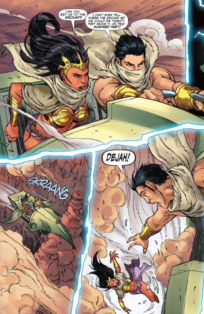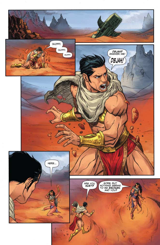 John Carter and Dejah Thoris discover what may well be the key to repairing the dying atmosphere of Mars. But the long-lost technology of the White Martians is not only protected by deadly robots, it’s also being sought by other agents who will stop at nothing to retrieve it. John and Dejah might well save Mars, but only if they can save themselves! The start of a two-part story that could change Mars forever!
