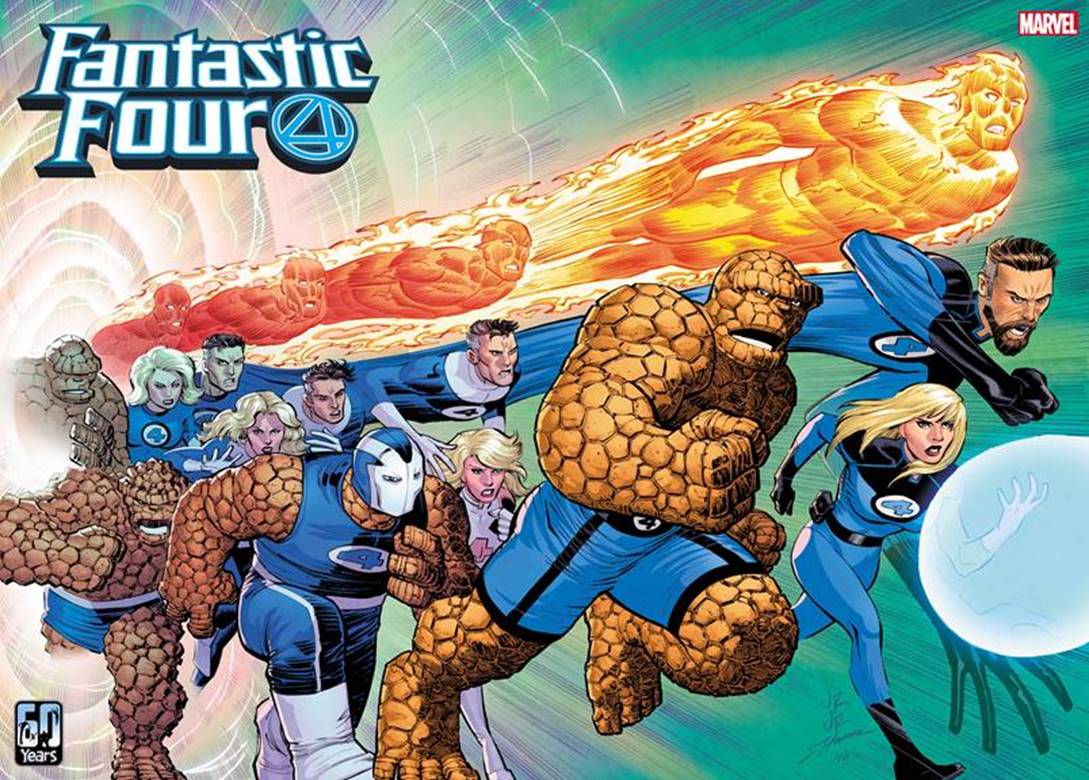 This year, Marvel Comics proudly celebrates the 60th anniversary of the Fantastic Four with a giant-sized issue worthy of the iconic super hero’s team monumental legacy! Joining series writer Dan Slott will be legendary artist John Romita Jr., marking his highly-anticipated return to Marvel with this thrilling issue. In addition to drawing a story within this epic issue, Romita Jr.’s beloved style will also grace the issue in the form of an incredible wraparound cover. Highlighting Reed, Sue, Ben, and Johnny’s transformation since Stan Lee and Jack Kirby first created them, the artwork serves as both a celebration of Fantastic Four’s journey and a teaser of the story inside: a showdown across Fantastic Four history against the master of time travel—Kang the Conqueror!