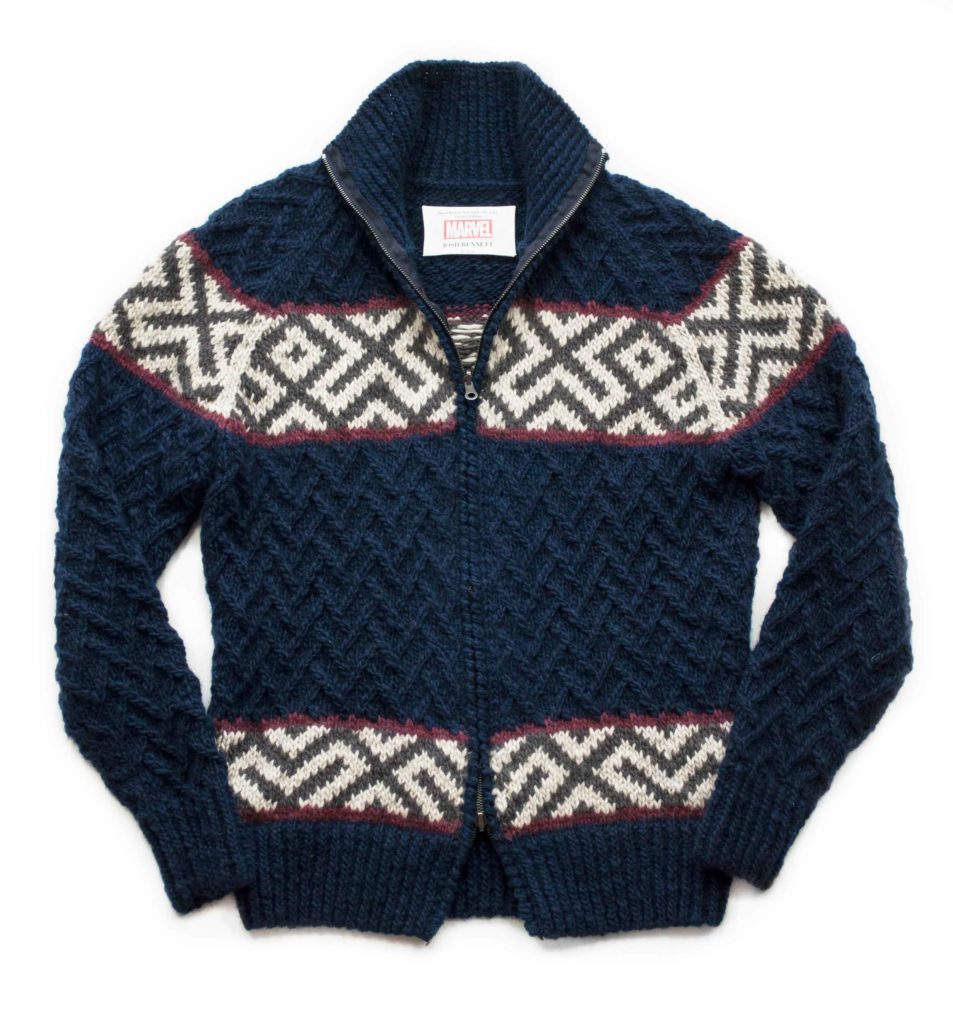 Marvel has had great success with merging its characters with the fashion world, as its fandom is excited by lifestyle apparel to have a unique way to celebrate their passion for the brand and characters. Past collaborations have spanned couture to performance wear, but this is the first co-branded sweater line ever done from Marvel. The luxury limited edition collection includes four different styles, a chunky cardigan, v-neck tennis sweater, fisherman hoodie, and fair isle zip up, and uses yarns including 100% Italian cashmere and yarns from New Zealand, a nod to Thor: Ragnarok director Taika Waititi. Each sweater is extremely limited to no more than three pieces per size for each style and is numbered and dated.
