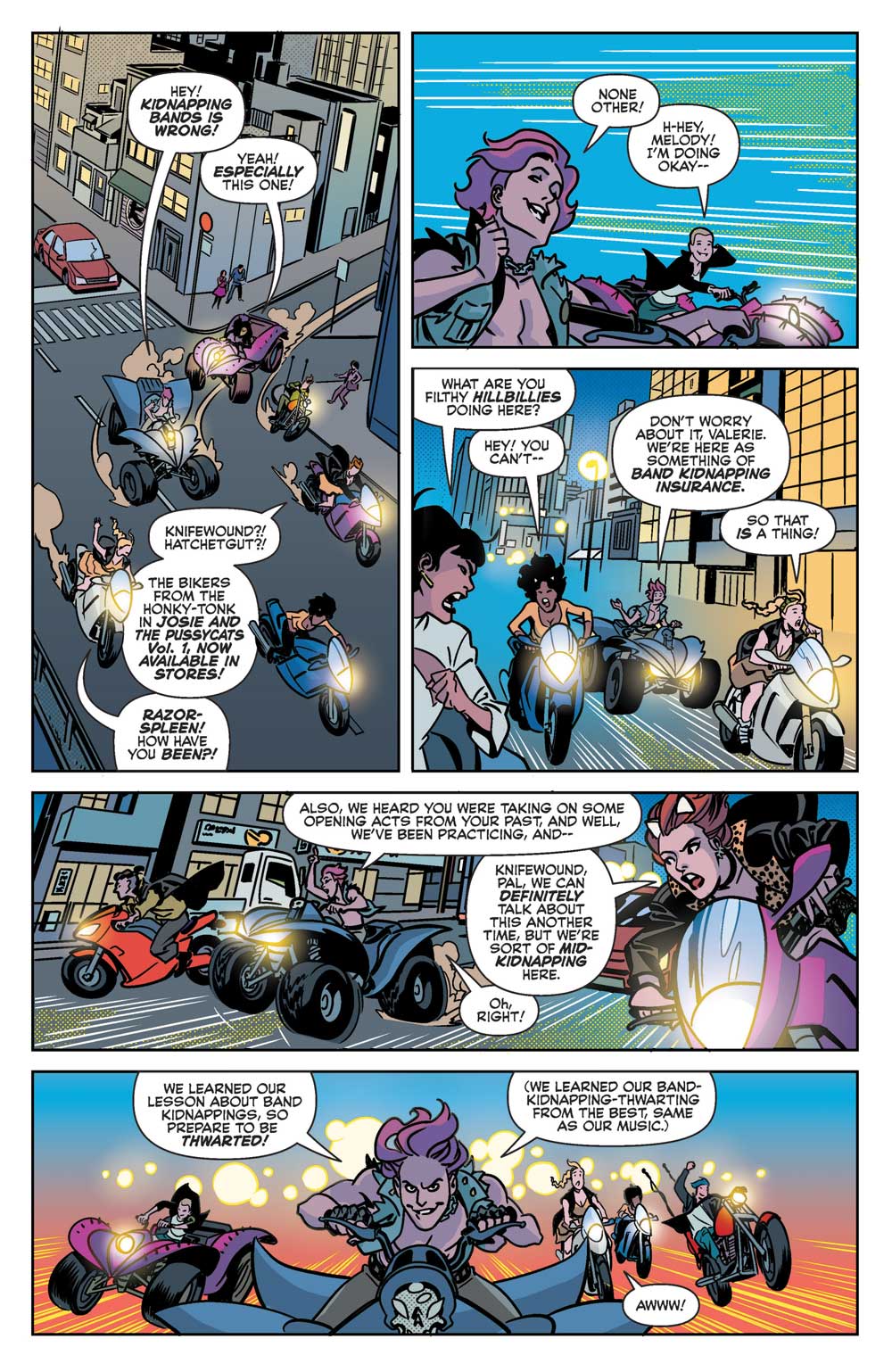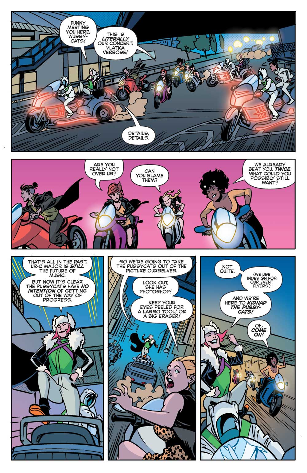 The Pussycats and their various musical allies and friends must unite to save the kidnapped Archies! Don’t miss the stunning finale to “FASTER, PUSSYCATS: DRIFT, DRIFT”!