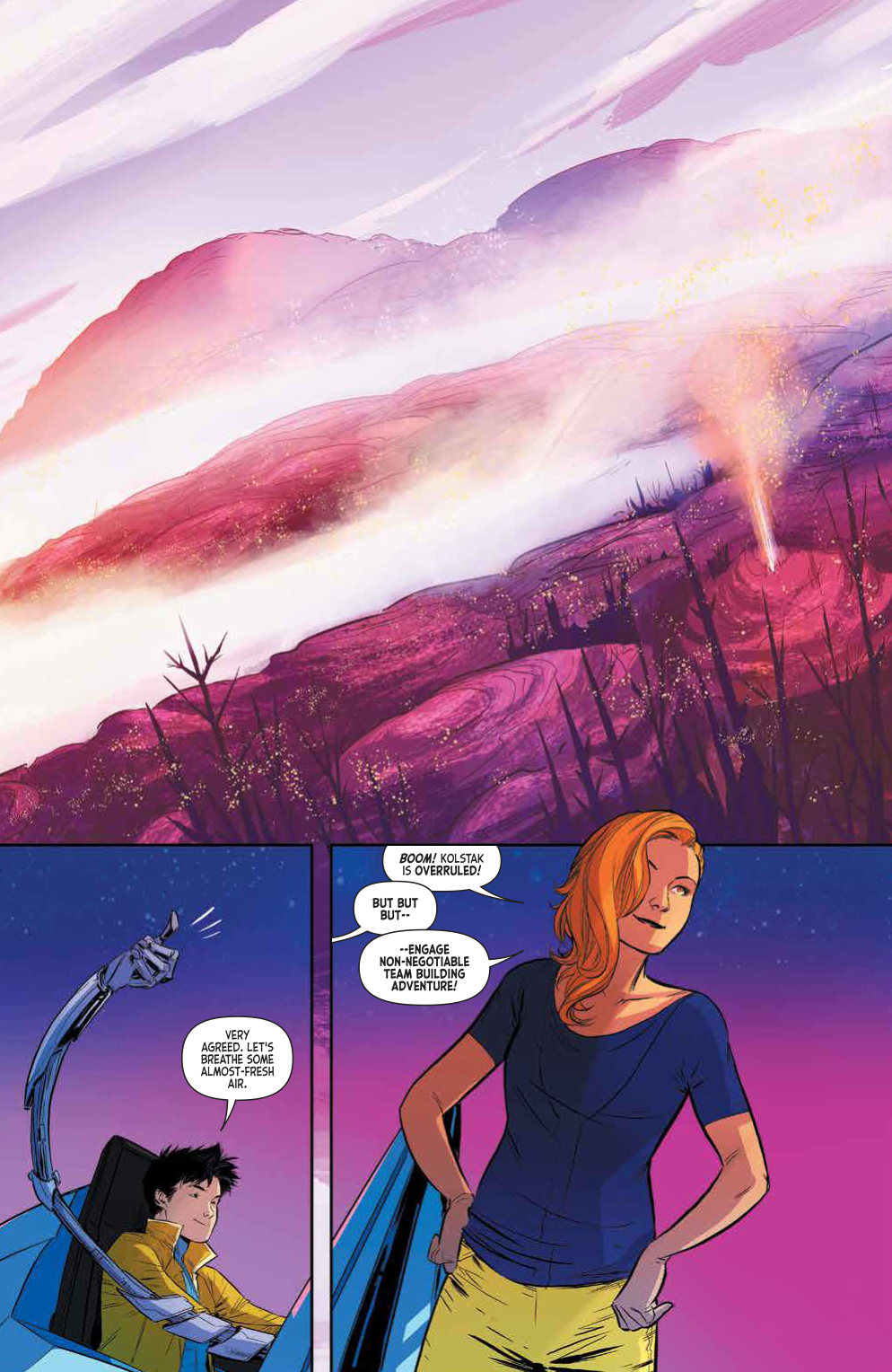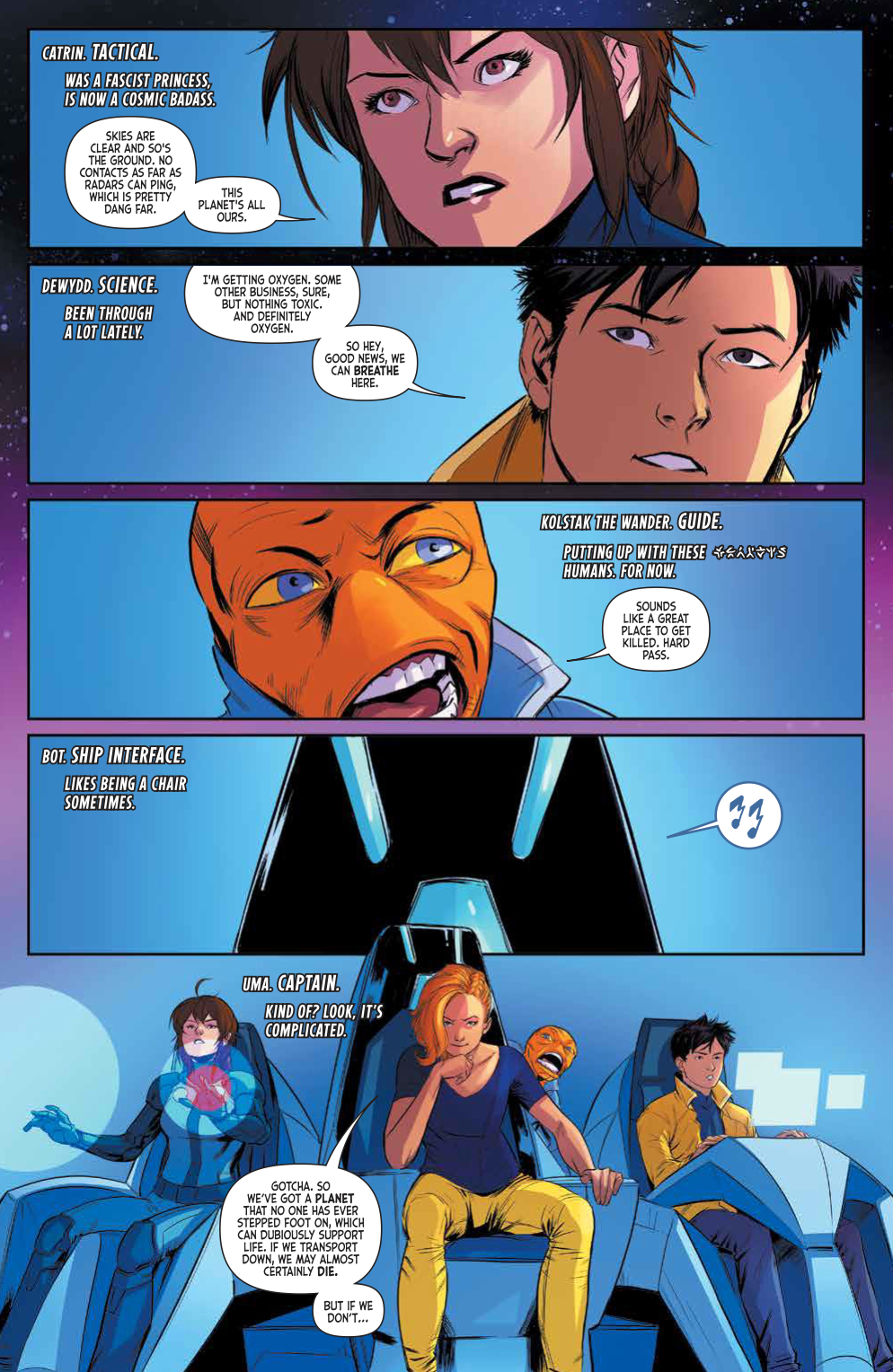 Synopsis: The crew of the Joyride survived their first foray to the stars and met the challenges the galaxy threw at them head-on, so it’s only fair they enjoy a bit of relaxation and carefree living. But as Uma, Dewydd, and Catrin have come to learn, in space, nothing is as it seems. In fact, it’s the secrets hidden in their own ship and among their fellow travelers that will send the crew down a path that brings them face-to-face with the very alien threat that the leaders on Earth ran from so long ago. Collects issues #5-8.