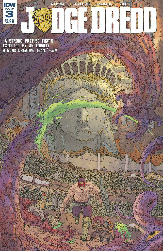 Mega-City Zero, Part 3! As Dredd continues to unravel the mystery of what has become of Mega-City One, he’s forced to combat a seemingly invincible monster in “The Feeding of the Trolls”!