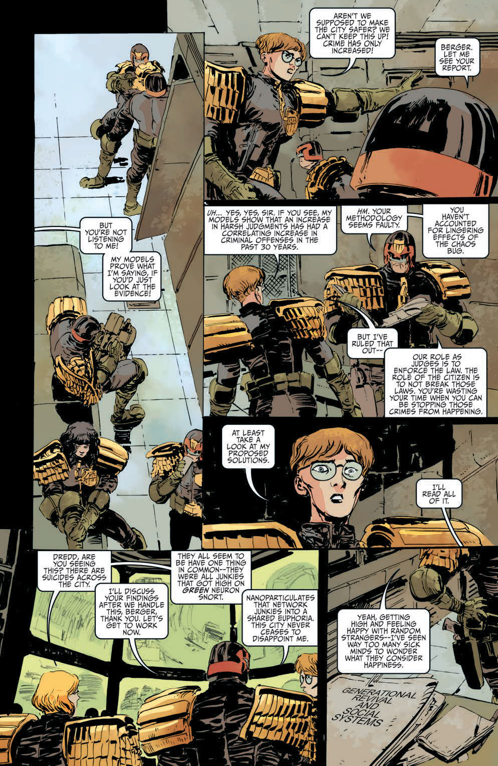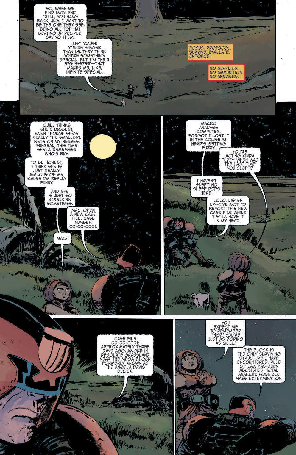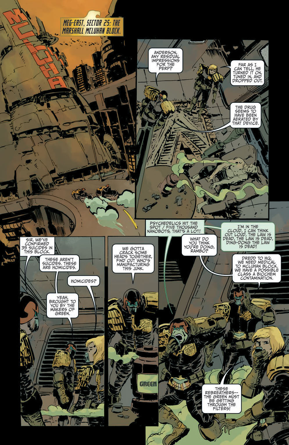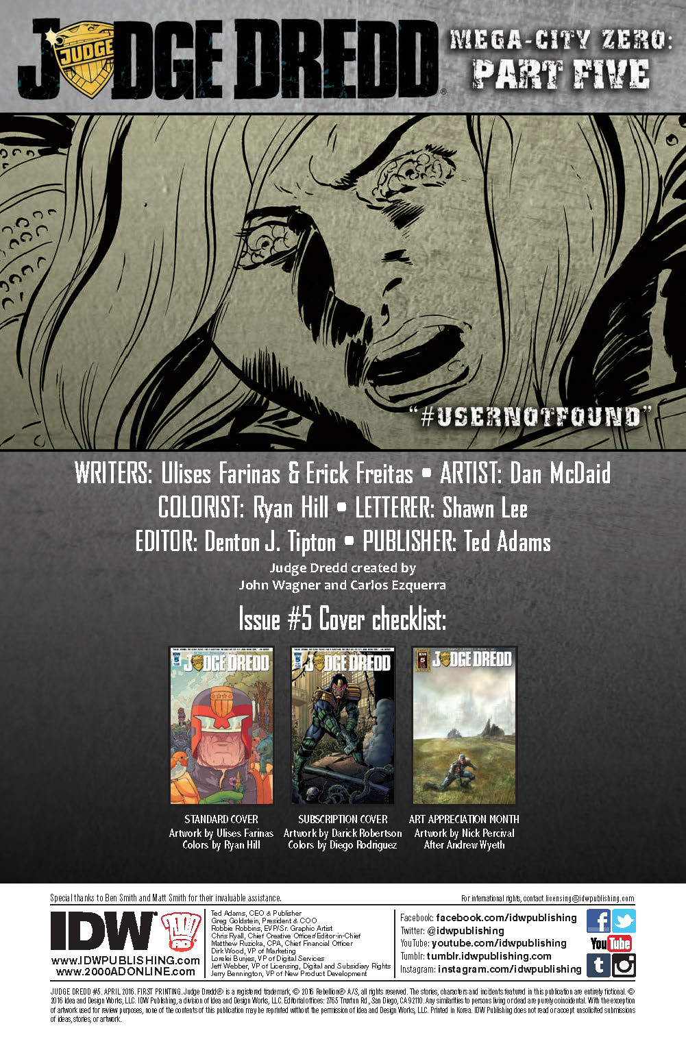Mega-City Zero, Part 5! Dredd and the girls begin a quest in light last issue’s revelation in this chapter, entitled “This User Does Not Exist.”