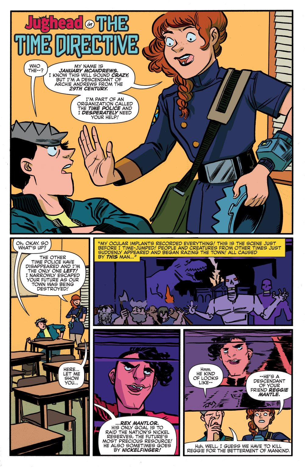Zdarsky and Henderson return with the next issue of the all-new Jughead! Things continue to be amiss at Riverdale High as Coach Clayton gets replaced by a tough-as-nails, take-no-prisoner Phys-Ed teacher! Can he be stopped or will Jughead have to become… physically active? The answer lies in the farfuture…