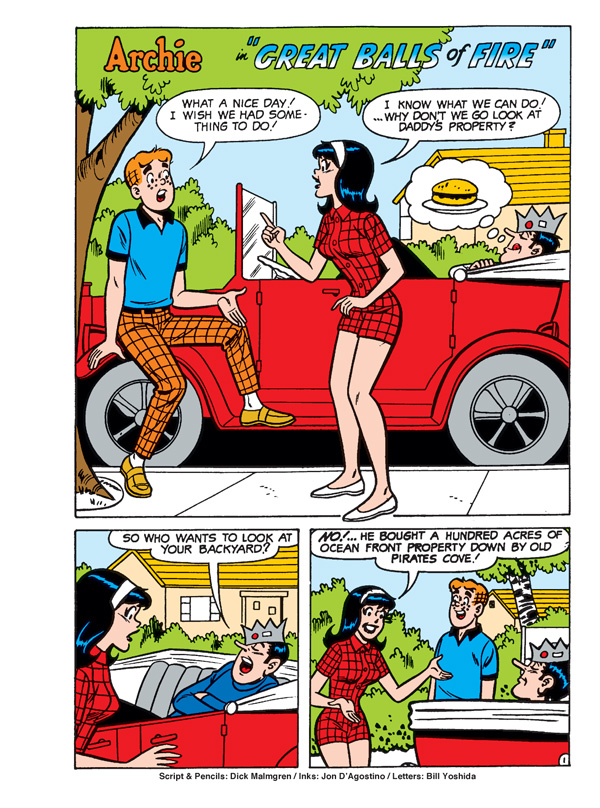 Archie’s got a big date for Veronica and he’s running late! If only he could find his pants… and his socks… and his car—ok, maybe Archie needs to get organized before he can even start thinking about dating! See if Jughead can help Archie make it to Ronnie’s on time, or if he’ll be kicked to the curb in “Medium Well” the hilarious new lead story to this JUMBO comics digest!