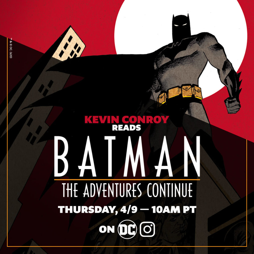 Who better to introduce fans to the world of Batman: The Adventures Continue than the voice of Bruce Wayne (and Batman!) himself! This Thursday, April 9, at 10am PT on DC’s Instagram, Kevin Conroy will dramatically read a chapter from Batman: The Adventures Continue, DC’s new, digital-first comic, written by Alan Burnett and Paul Dini. Conroy originated the role of Batman in the Emmy Award-winning Batman: The Animated Series, which Burnett and Dini both produced, and has portrayed the Dark Knight more times than any other actor.