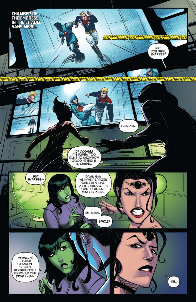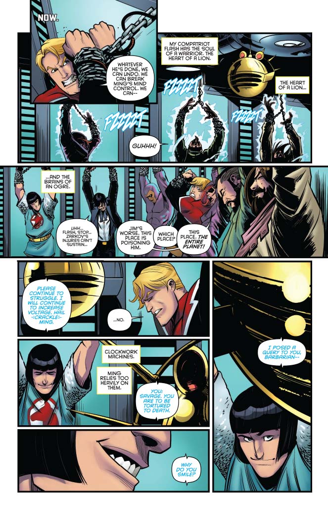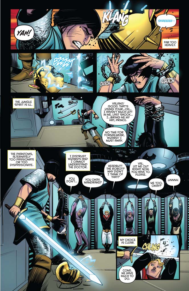 Flash Gordon escapes! Broken in mind and spirit, our intrepid heroes must bust out of their sci-fi prison and rescue their friend, even if that friend doesn’t want to be rescued! Continuing the epic crossover that unites the greatest heroes from the King Features Syndicate comic strips: The Phantom, Mandrake the Magician, Prince Valiant, Jungle Jim, Flash Gordon, and more!