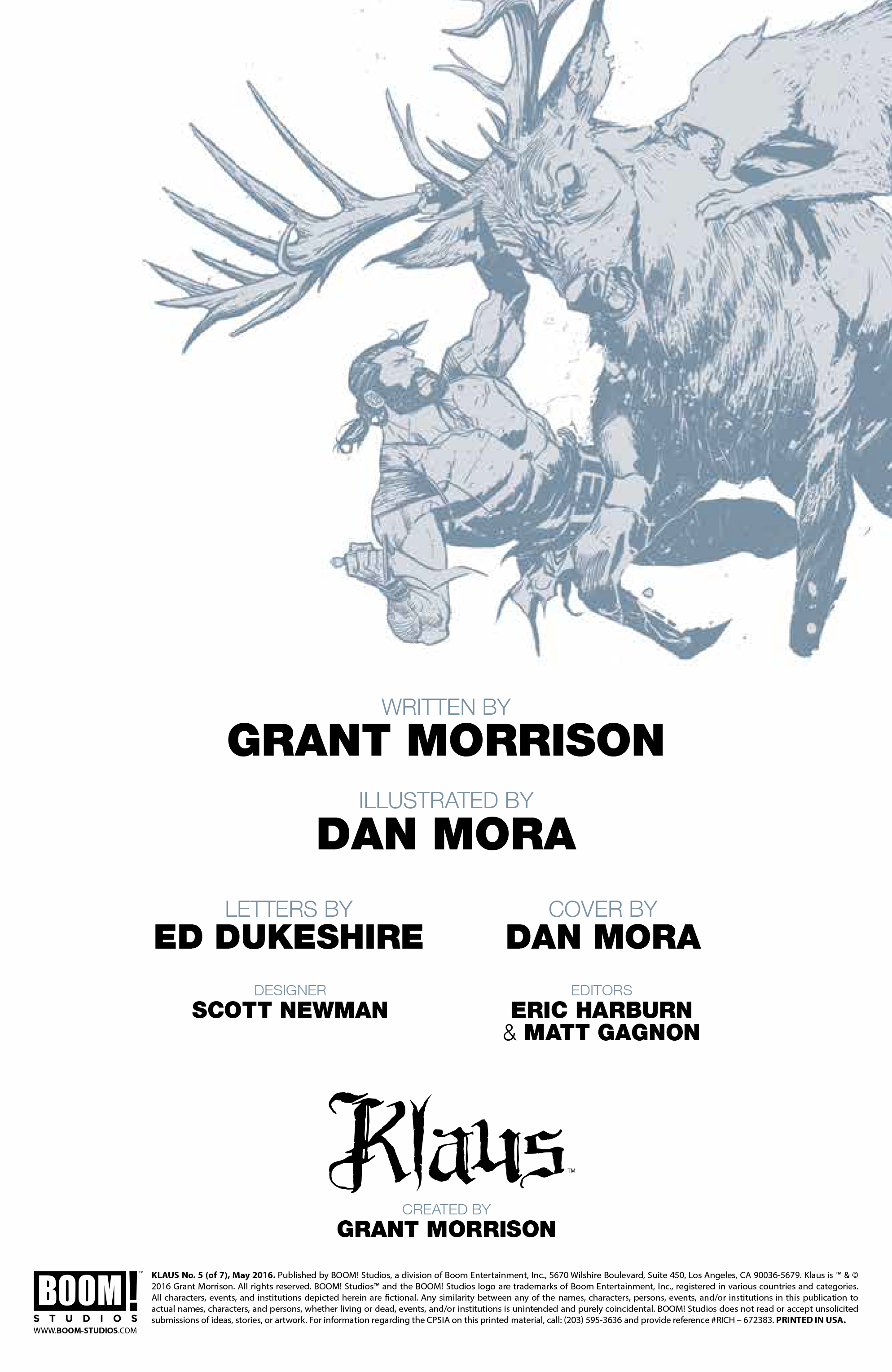 PreviewsBOOM! Studios Previews Klaus #5 By Comix Asylum - Apr 28, 2016 0 640 FacebookTwitterPinterestWhatsApp Klaus #5 Writer: Grant Morrison Artist: Dan Mora Magnus passes judgement on Klaus, and the enemy’s past is revealed. Klaus #5 1 of 7