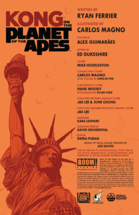 • BOOM! Studios’ Kong comics are based on Joe DeVito’s Skull Island and Merian C. Cooper’s King Kong.