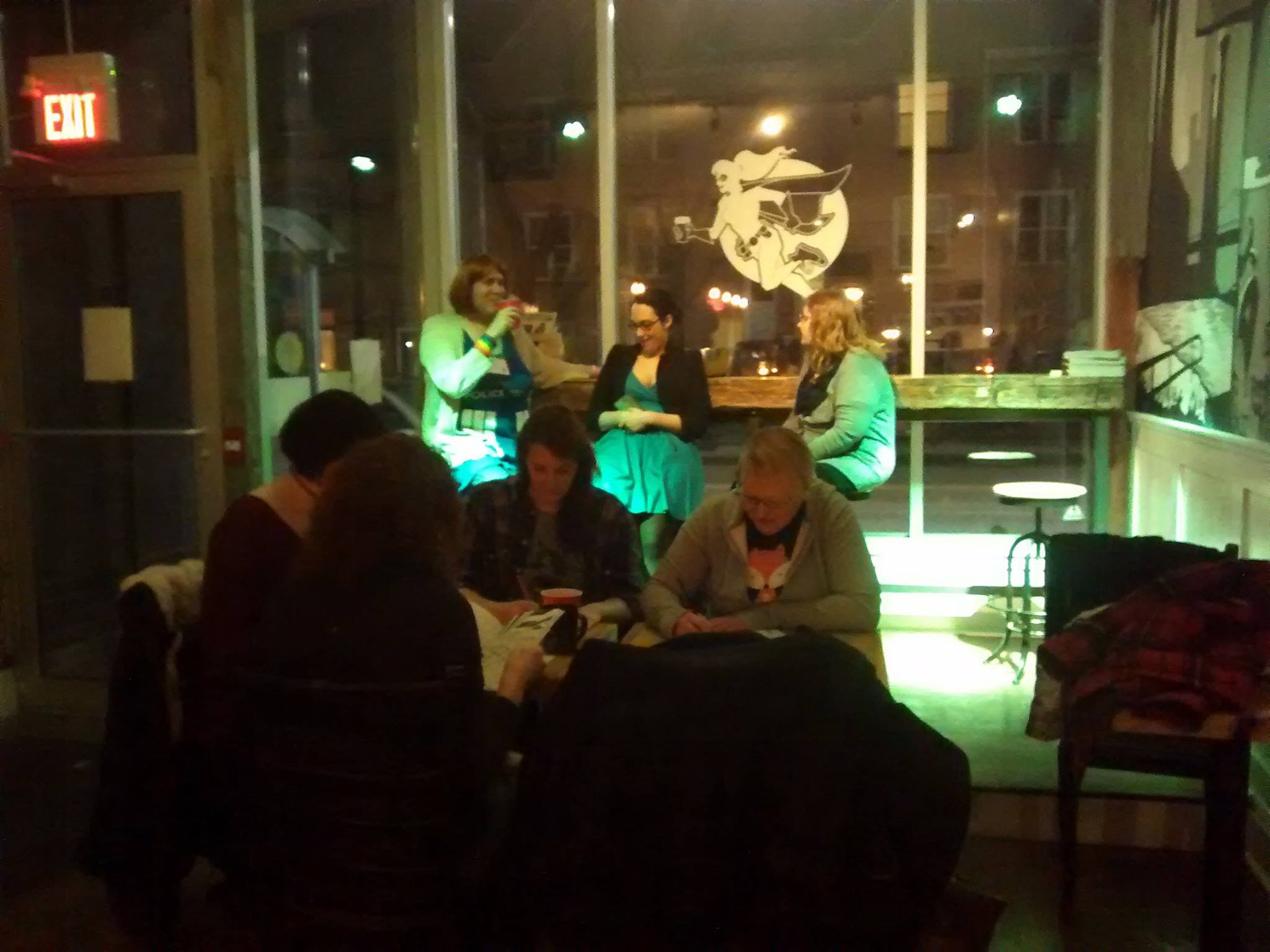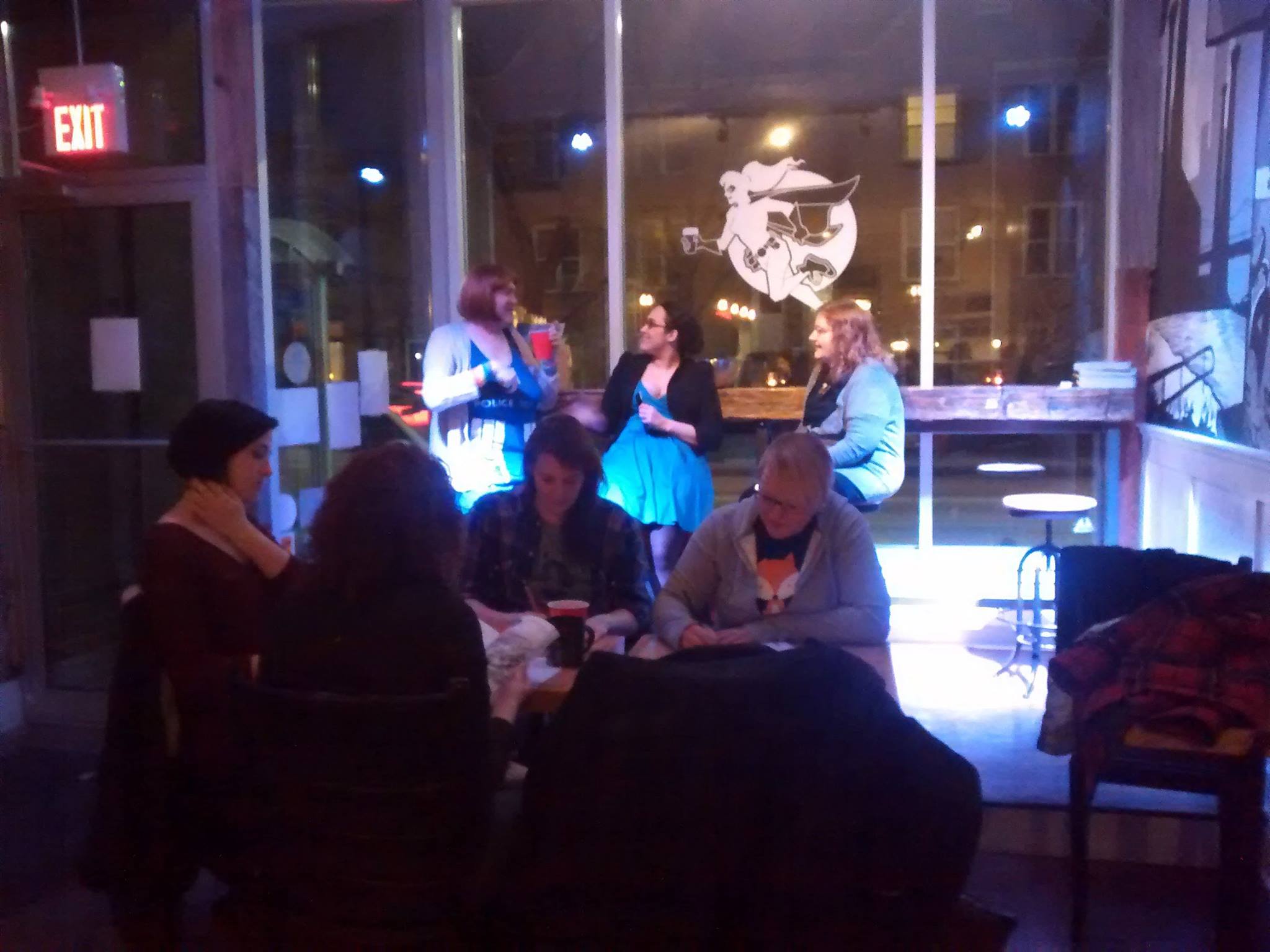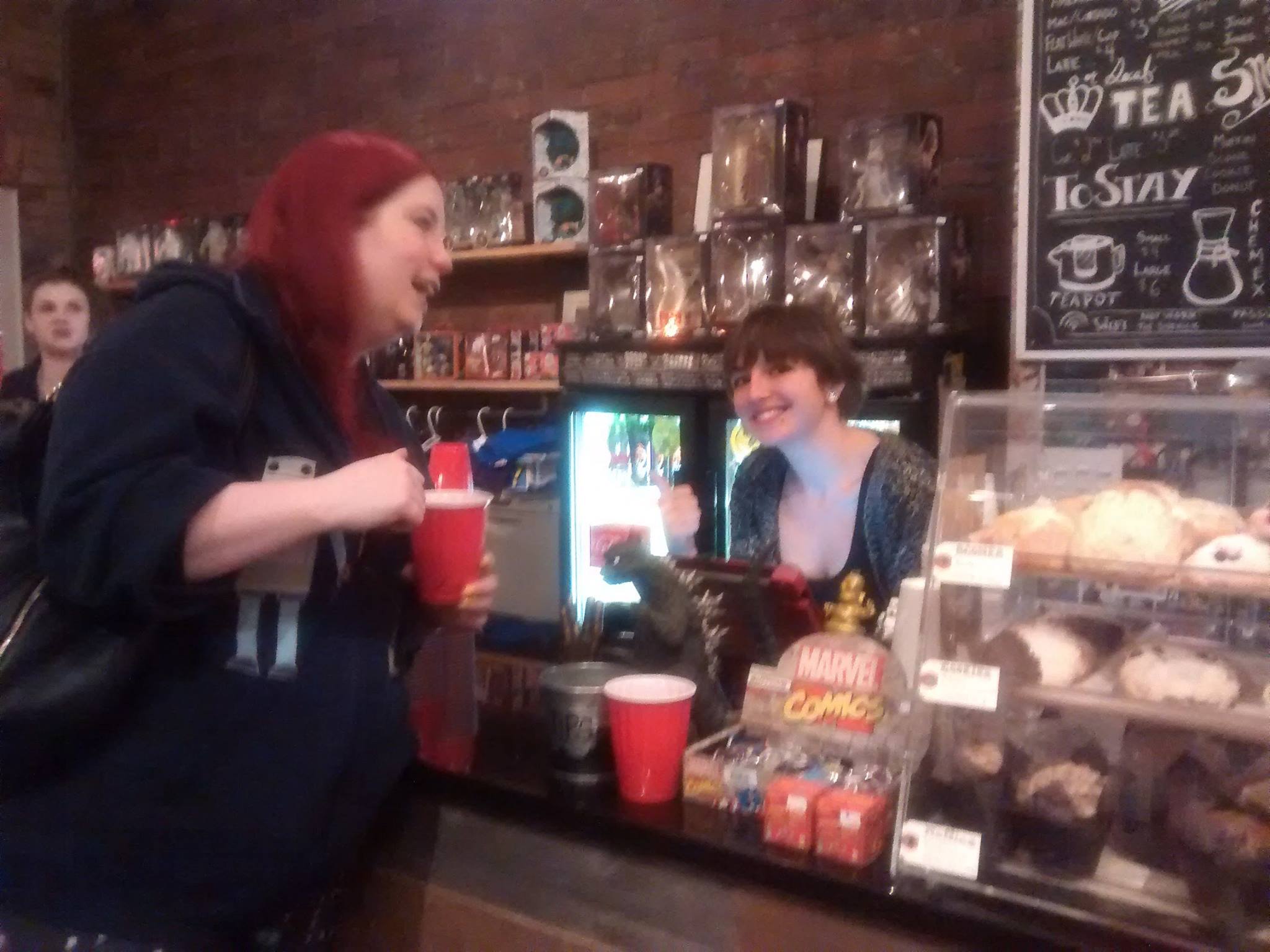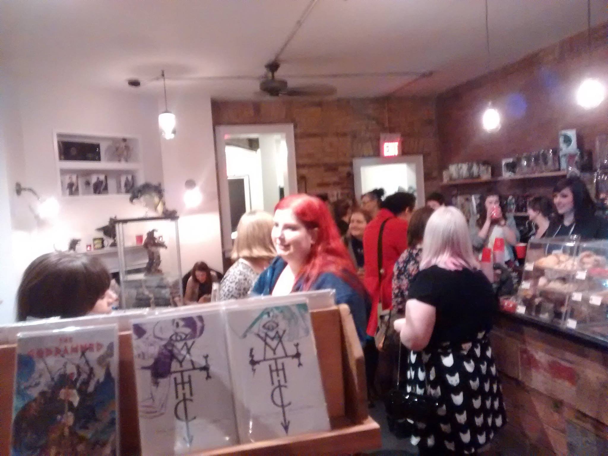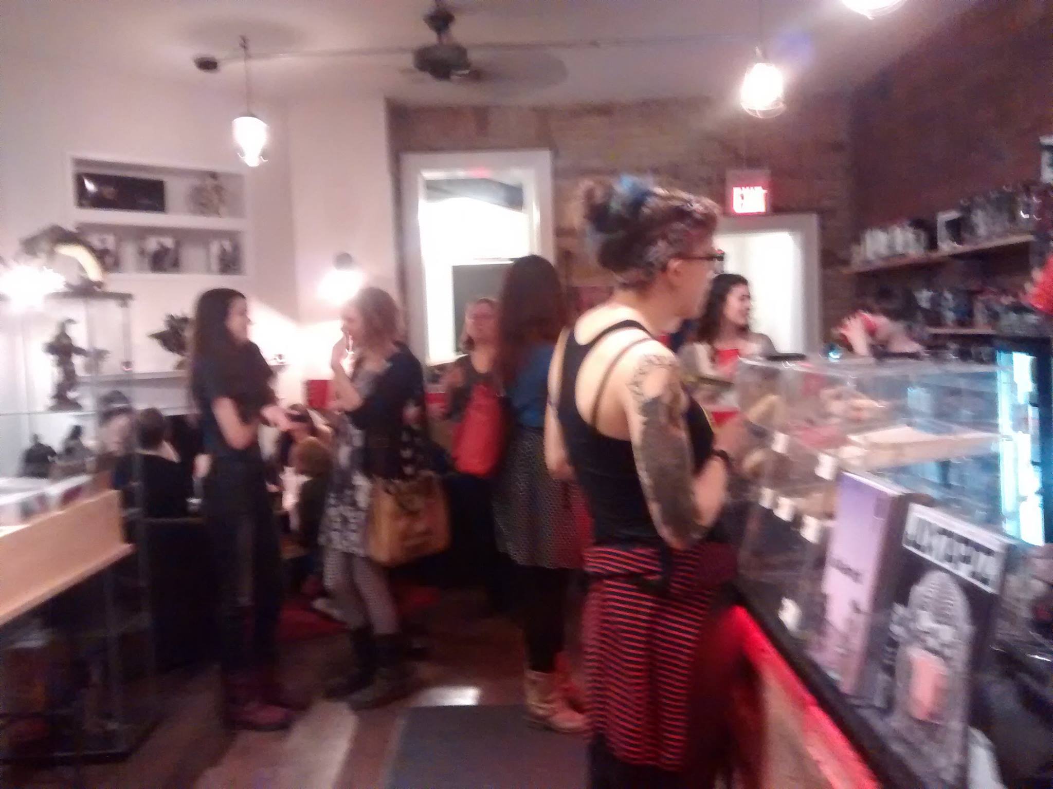 This Ladies Night event was held at The Sidekick, an awesome new comic shop/café in Toronto’s East end. The Ladies Night Committee was excited and enthused to work with Chris Tine, owner of Sidekick – this is the first time we have had a Ladies Night at a Comic Shop owned by a woman! The great part about The Sidekick is that because it is part café, the shop is already set up for a party atmosphere with lots of tables and chairs and wide-open spaces for people to gather and chat.