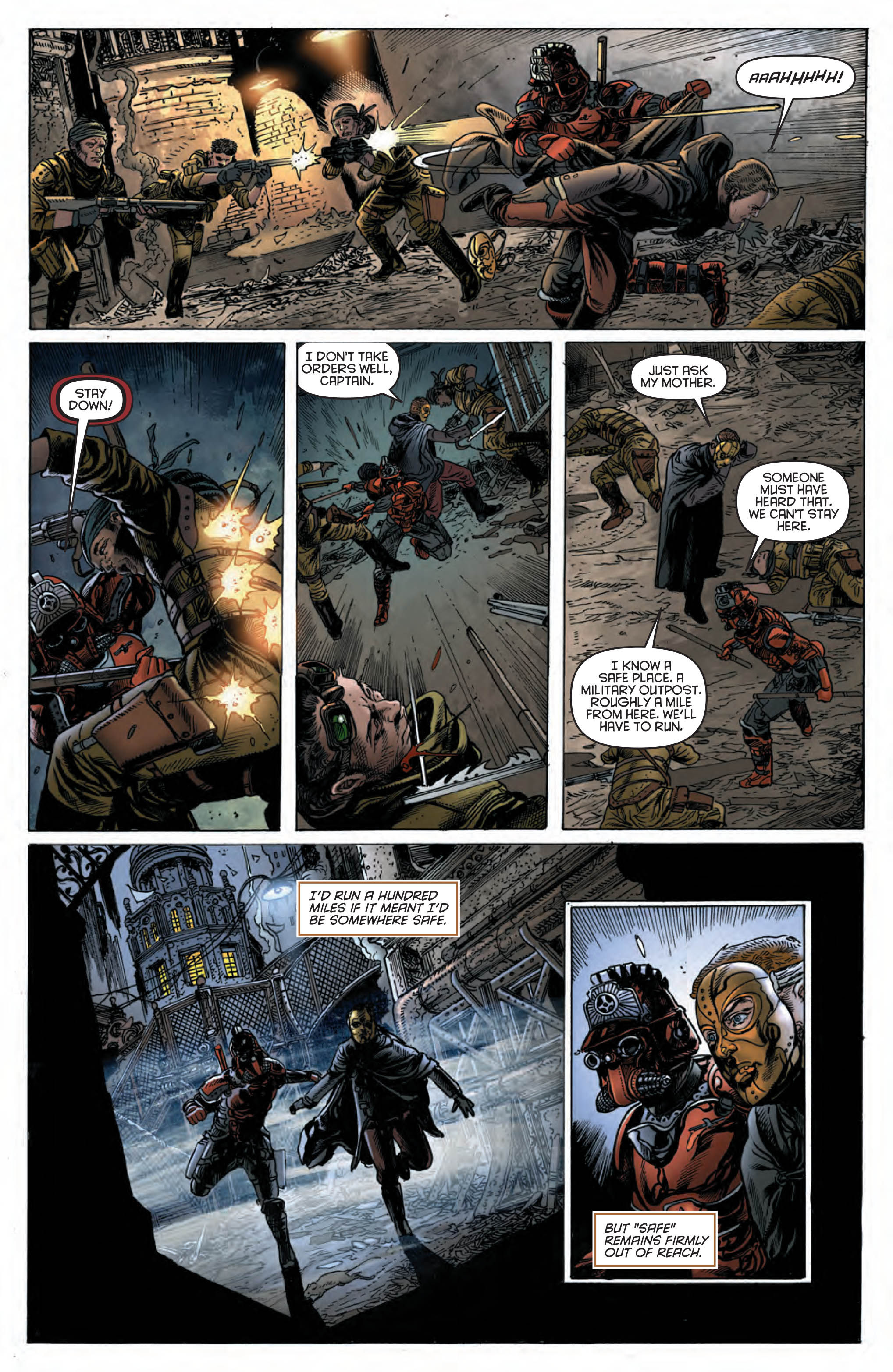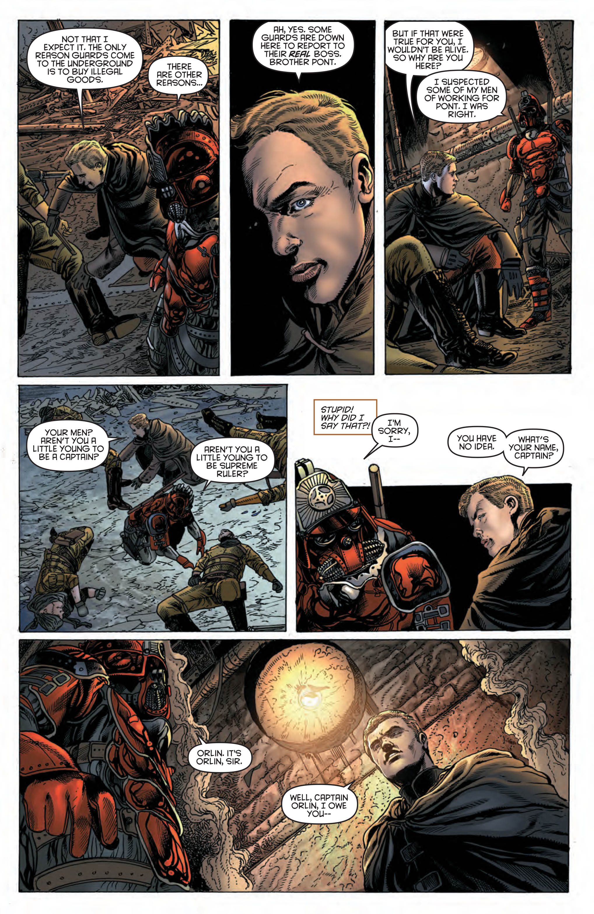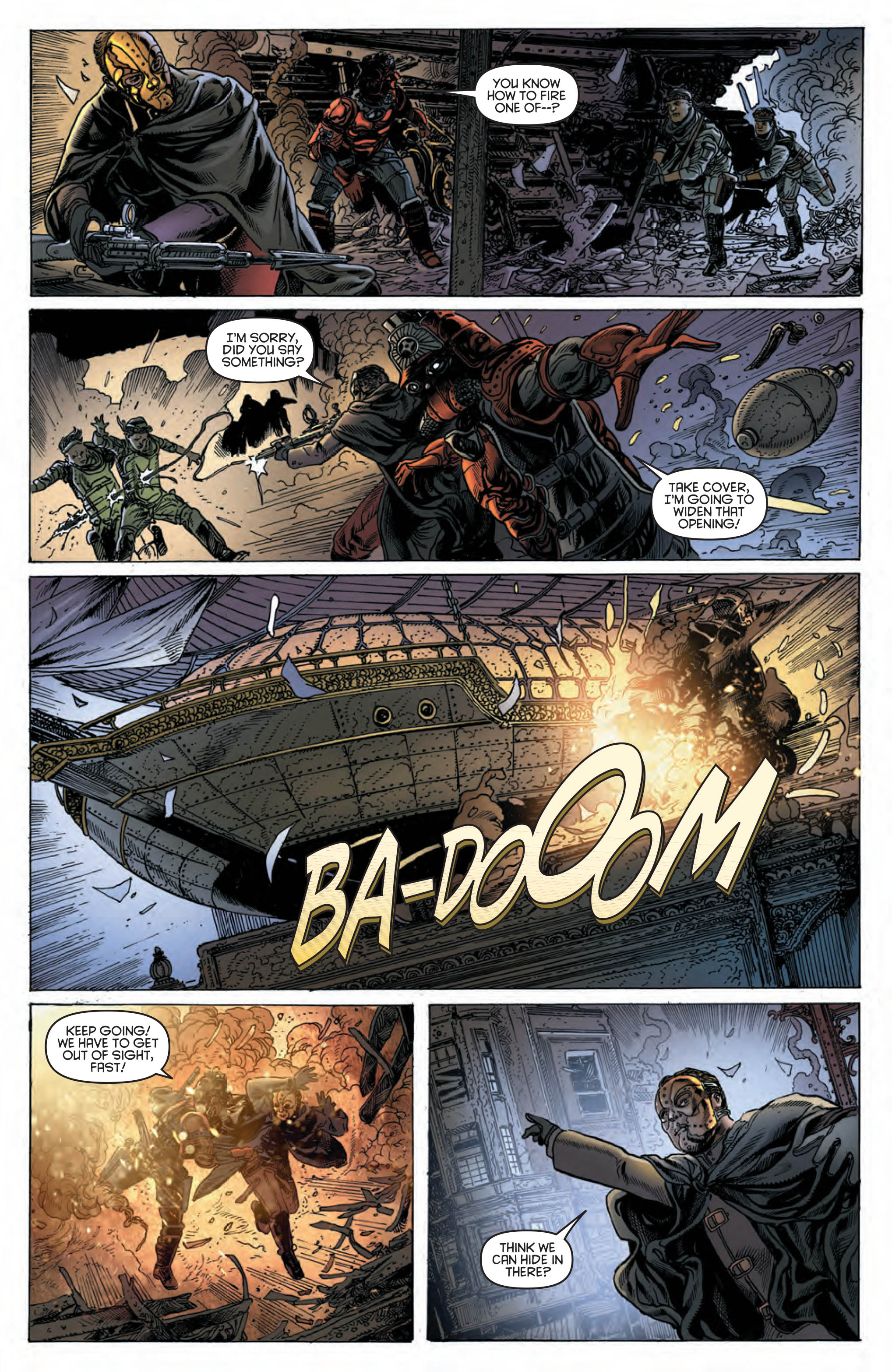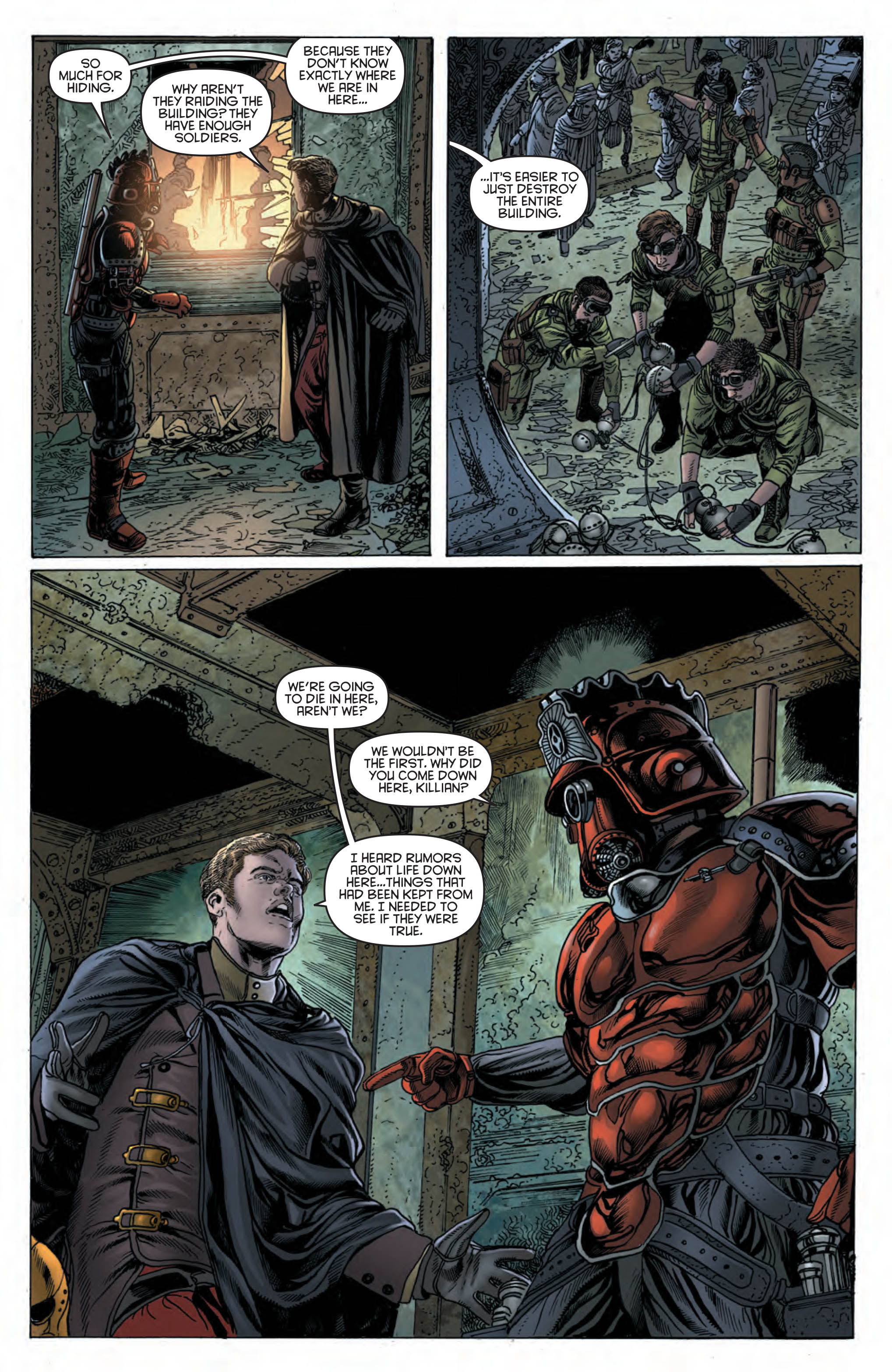 Synopsis: Sander Jorve thought that infiltrating the brutal Guard of Lantern City would help his family and his cause. He was wrong. After a chance run-in with the Emperor of the city, Killian Grey, Sander finds himself promoted to the Grey Guard, working directly under Killian in the heights of Grey Towers. The luxury is unparalleled, but can Killian be trusted? Can Sander trust himself? Nowhere in Lantern City is safe…and the imperial court may just be the most dangerous place of all. Collects issues #5-8 of the steampunk epic.