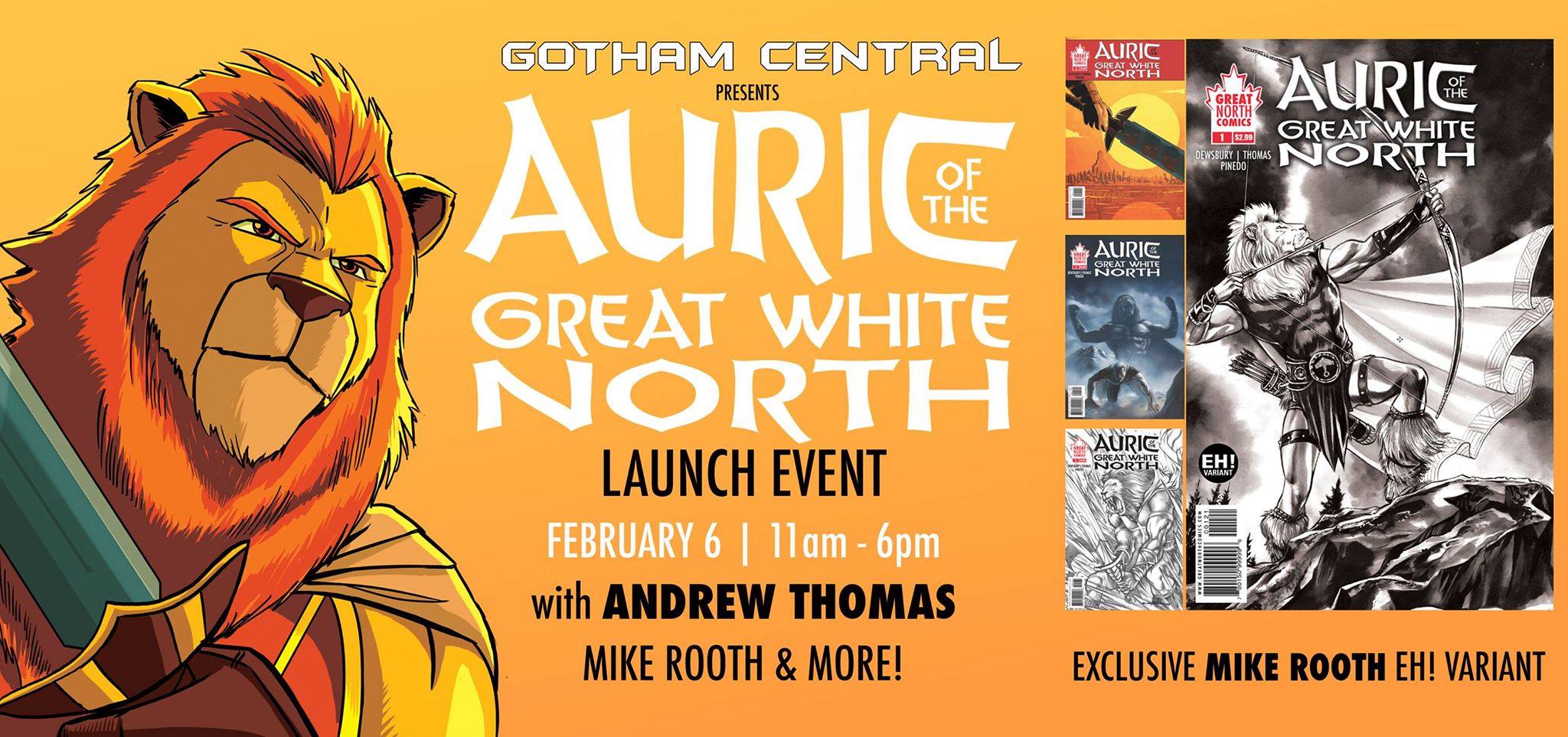 Last Saturday, Andrew Thomas co-creator of AURIC of the GREAT WHITE NORTH, officially launched the premiere of his monthly book!! The event was specifically held at Gotham Central Comics & Collectibles. The owner of the store willingly wanted to give Andrew a push in all the right directions by setting aside this day in his honour and by promoting like crazy!!