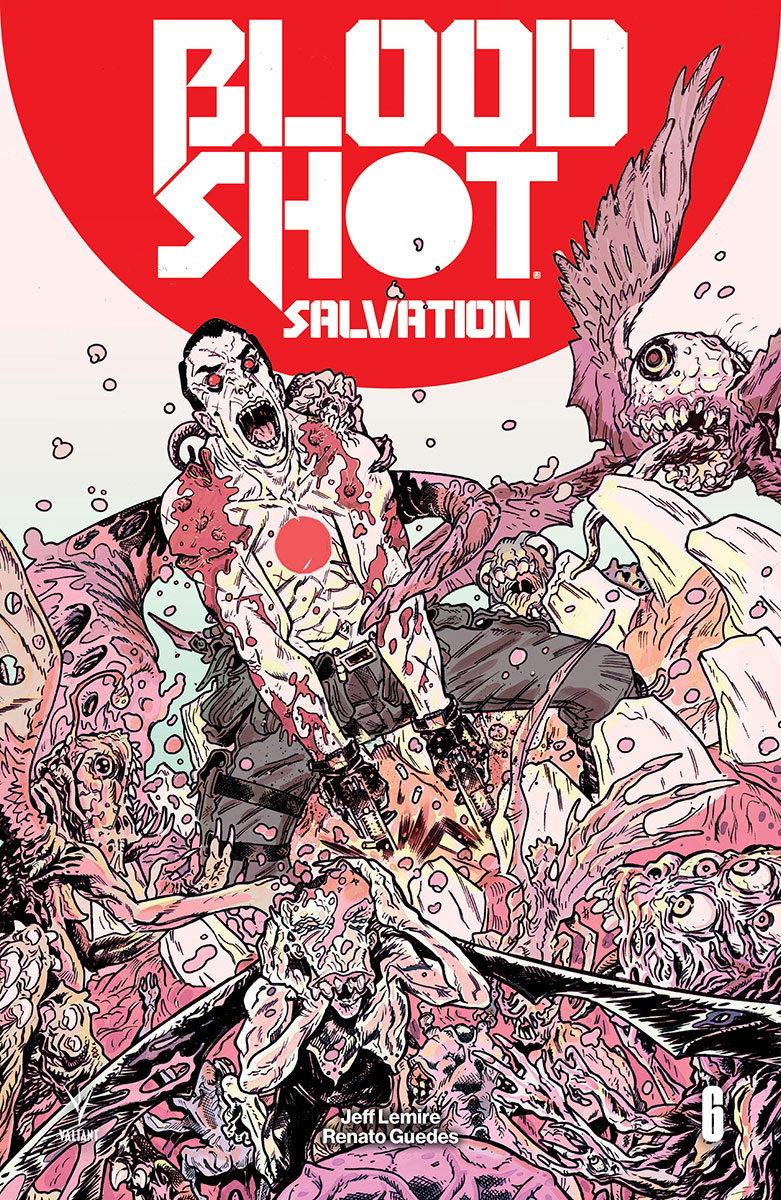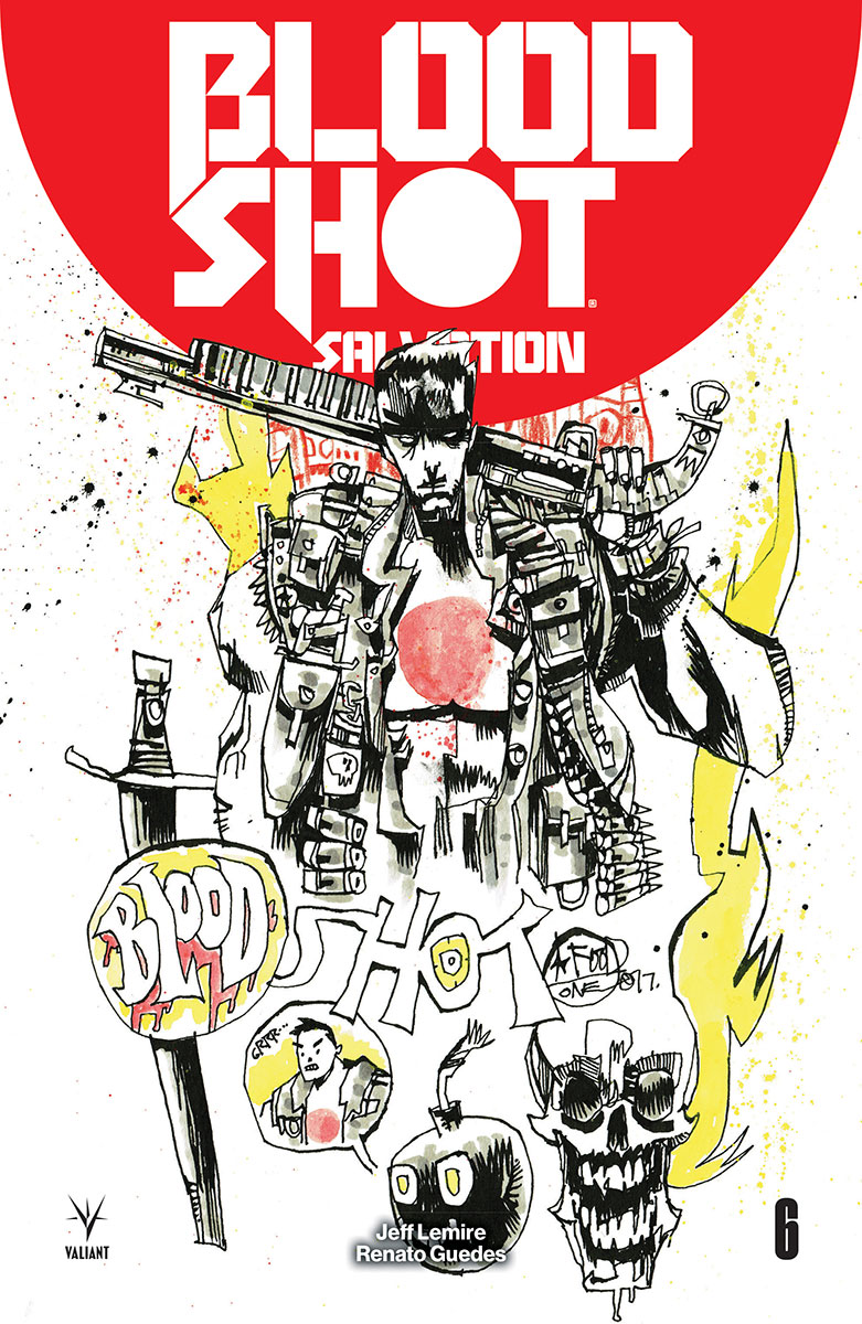 As first revealed at Multiversity Comics, Valiant is proud to announce BLOODSHOT SALVATION #6 – the FIRST ISSUE of “THE BOOK OF THE DEAD,” an ALL-NEW ARC and TERRIFYING NEW JUMPING-ON POINT for the BLOCKBUSTER ONGOING SERIES from New York Times best-selling writer Jeff Lemire (BLOODSHOT REBORN, Black Hammer) and astonishing artist Renato Guedes(Wolverine)! On February 14th, Jeff Lemire’s Eisner Award-nominated superhero saga kicks off the New Year with an astonishing new beginning as Project Rising Spirit’s walking weapon of war sets forth into the darkness to barter for life with the ruler of the land of the dead…