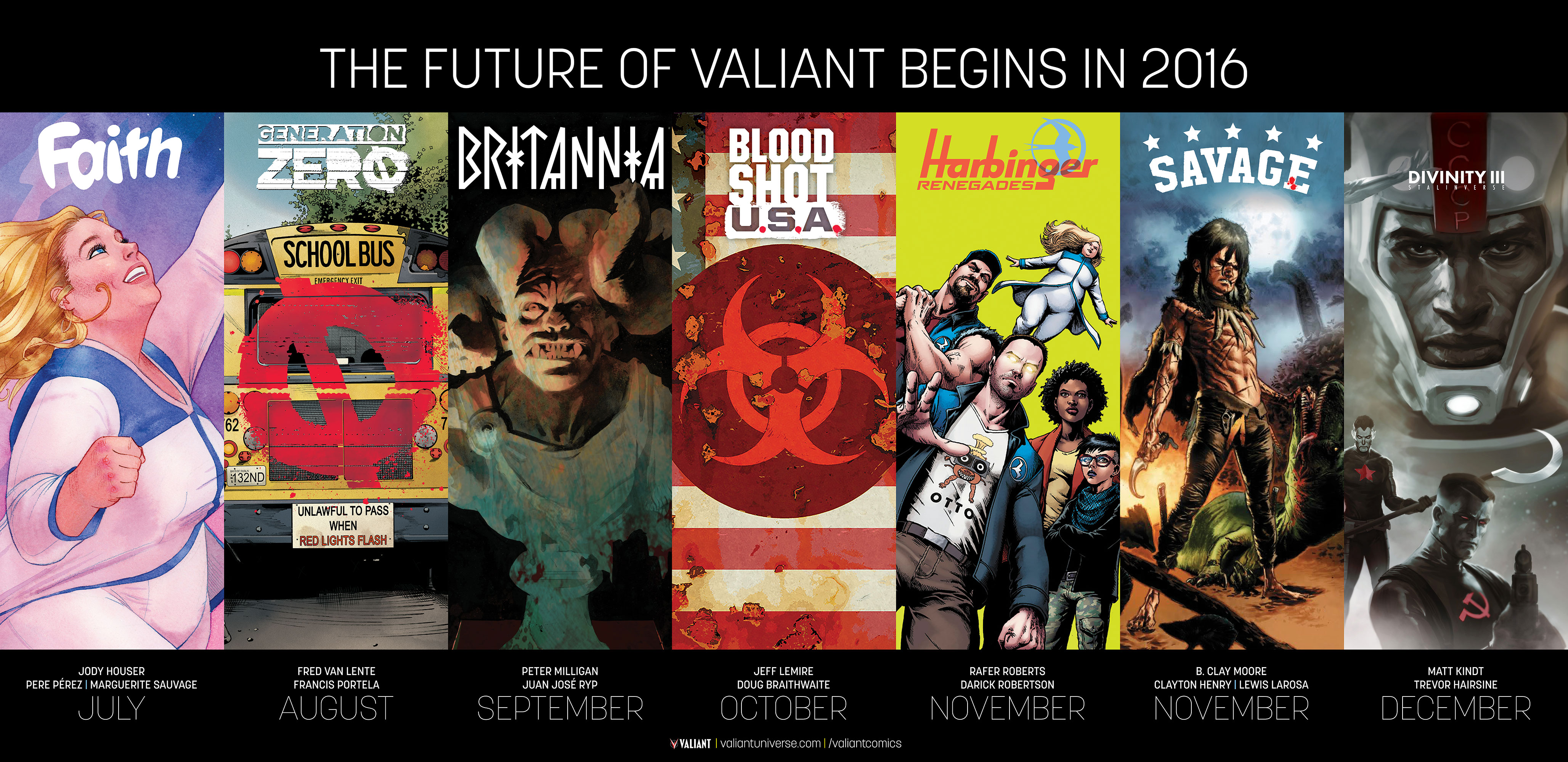 Then, “THE FUTURE OF VALIANT” continues with an all-new wave of ongoing series, prestige format projects and standalone events from a star-studded roster of some of comics’ most visionary talents! Beginning in July with FAITH #1, “THE FUTURE OF VALIANT” will extend throughout 2016 with a total of seven epic series – each introducing an innovative array of new concepts and characters…and firmly establishing Valiant’s place as the premier publisher of creative storytelling in comics today: