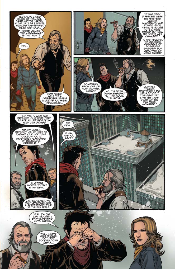 As the Librarians burst into the penthouse apartment of murdered movie maker Solomon Schick, they discover the startling secret behind his violent “death.” What’s more, they discover the truth behind “Quarry: Bigfoot,” “Heavenly Visitors from the Hell Above” and other Schick Classics might be more complex that they ever suspected.