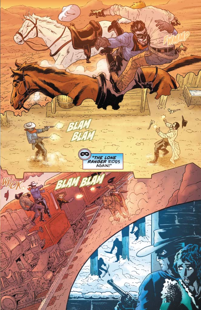 researched alternative history in 1936 as we learn whatever happened to The Lone Ranger and discover his familial link to the emergence of a man who is a modern day urban version of The Lone Ranger himself. What is the blood connection of The Green Hornet to The Lone Ranger? What is the link of Olympic runner Jesse Owens to The Green Hornet? What role does Bat Masterson play in The Lone Ranger’s New York adventure? What intense rift tears a family apart just when America desperately needs a great champion of justice? The shocking answers lie in the historic first issue of “The Lone Ranger Meets the Green Hornet: Champions of Justice!”