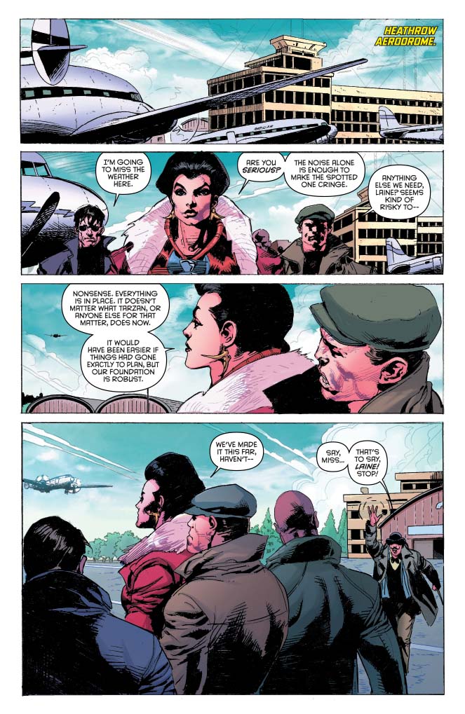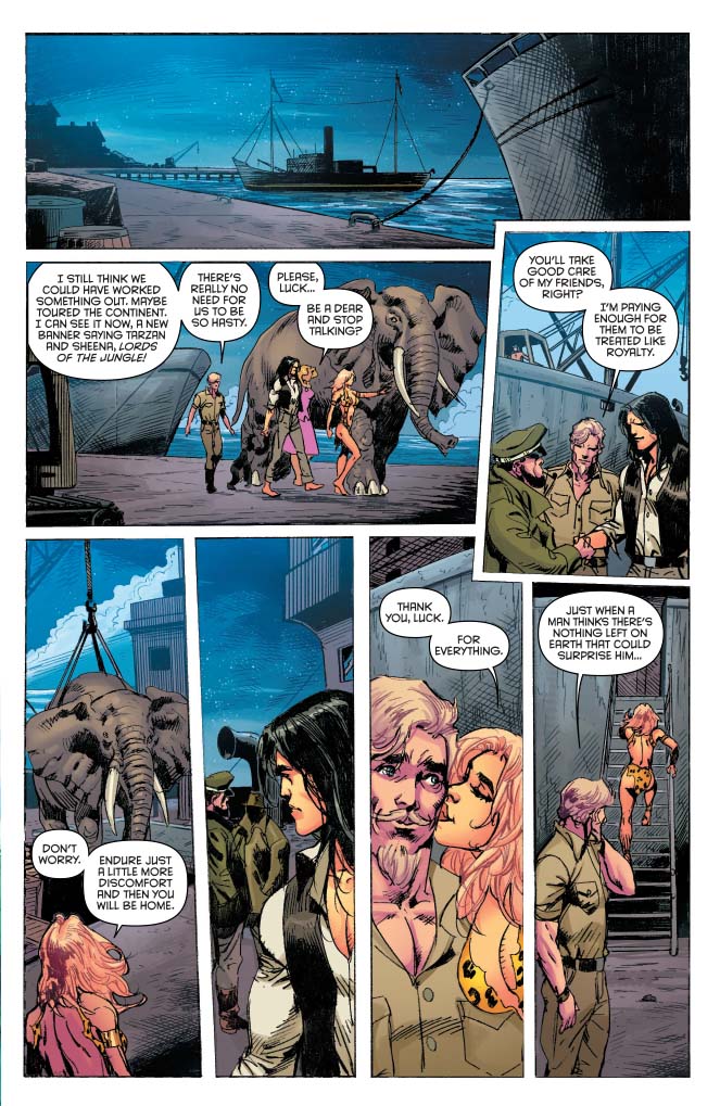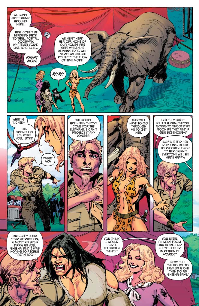 With the scope of the plot behind Jane’s kidnapping laid bare, Tarzan and Sheena are faced with something even more sinister: the possibility that no timeline is safe from the depredations of an apocalyptic cult! But with few resources and even fewer friends, can they wrest their fates and the future of their homes from the hands of Laine and her power mad cronies?