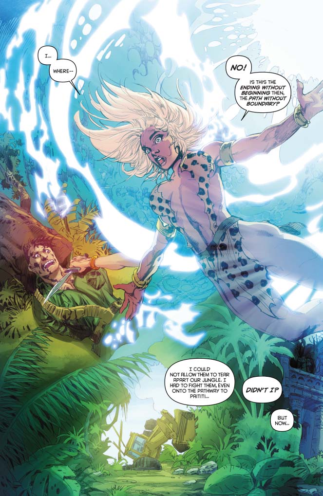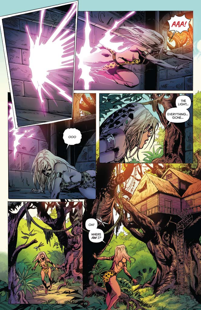 Tarzan has long been the protector of his jungle stronghold… but now he journeys deep into his enemy’s territory: the heart of London! Half a world away and nearly a century later, Sheena battles foes of her own when she is mysteriously swept through time and space to 1930’s Africa, leaving her own land unprotected. Will these two Lords of the Jungle find enough common ground to join forces? Or will the resulting culture clash lead to mutual destruction?