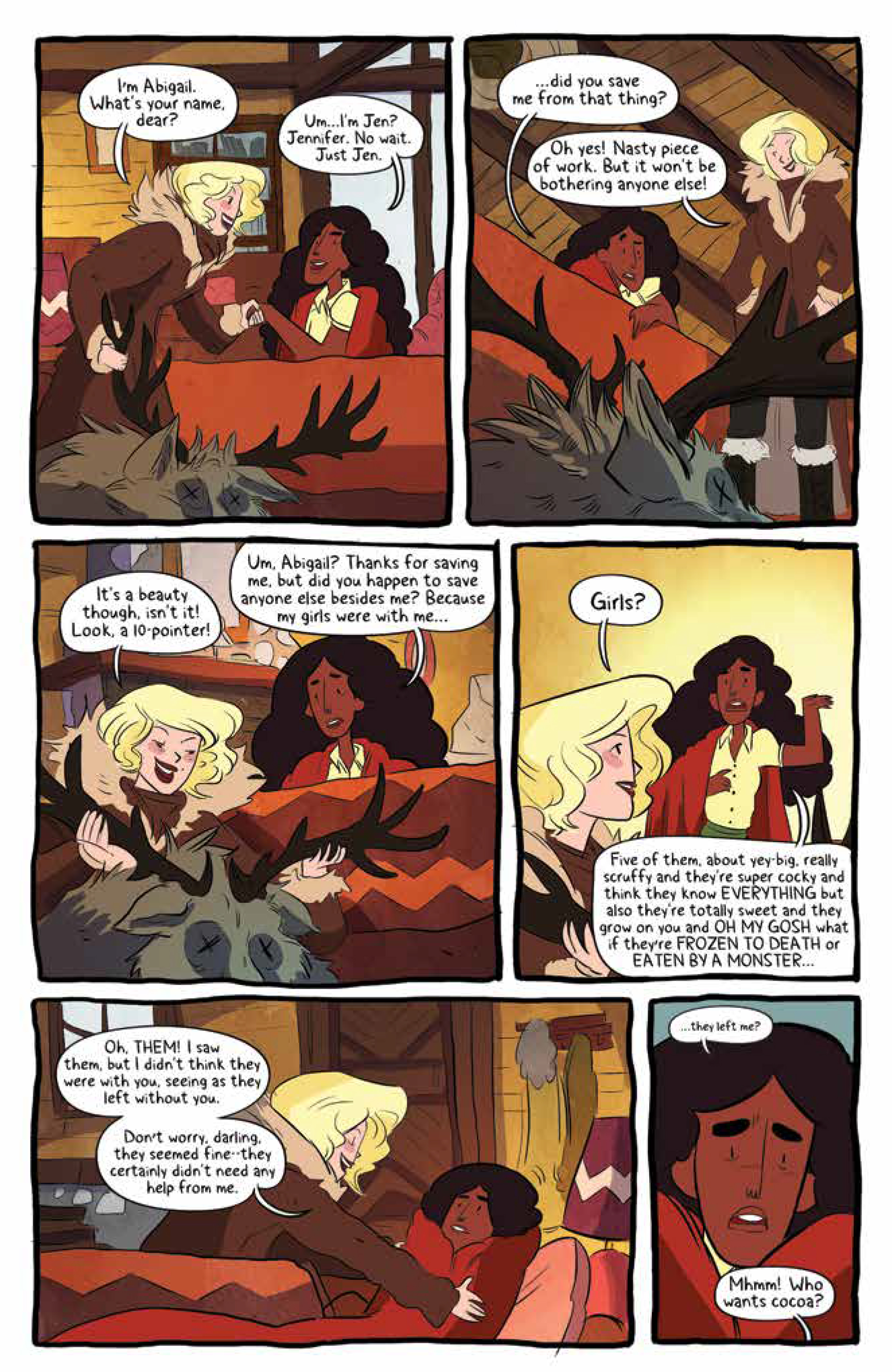 Synopsis: Jen just wants a normal lesson with her cabin, teaching Jo, April, Mal, Molly, and Ripley the basic survival skills needed without any supernatural intervention. But when a blizzard hits camp, Jen finds herself separated from the girls and in more trouble than ever…until a mysterious taxidermist swoops in to save the day. Who is she and what is her relationship to Rosie? Join Jen as she finds a way back to her girls, and a way to save the day! Collects issues #14-17.