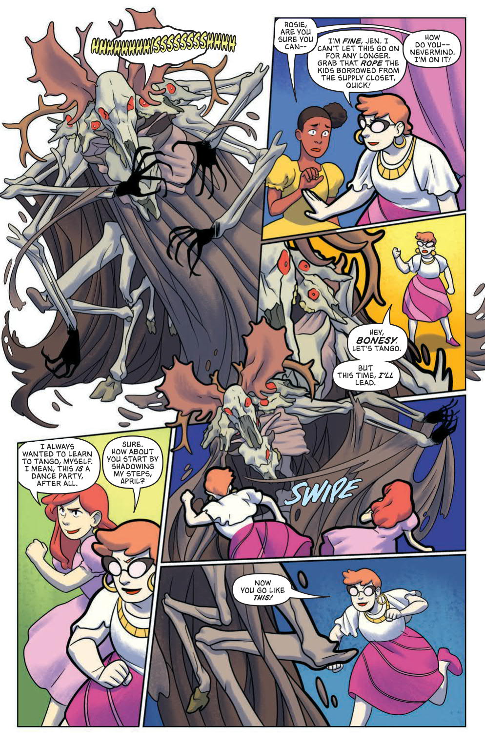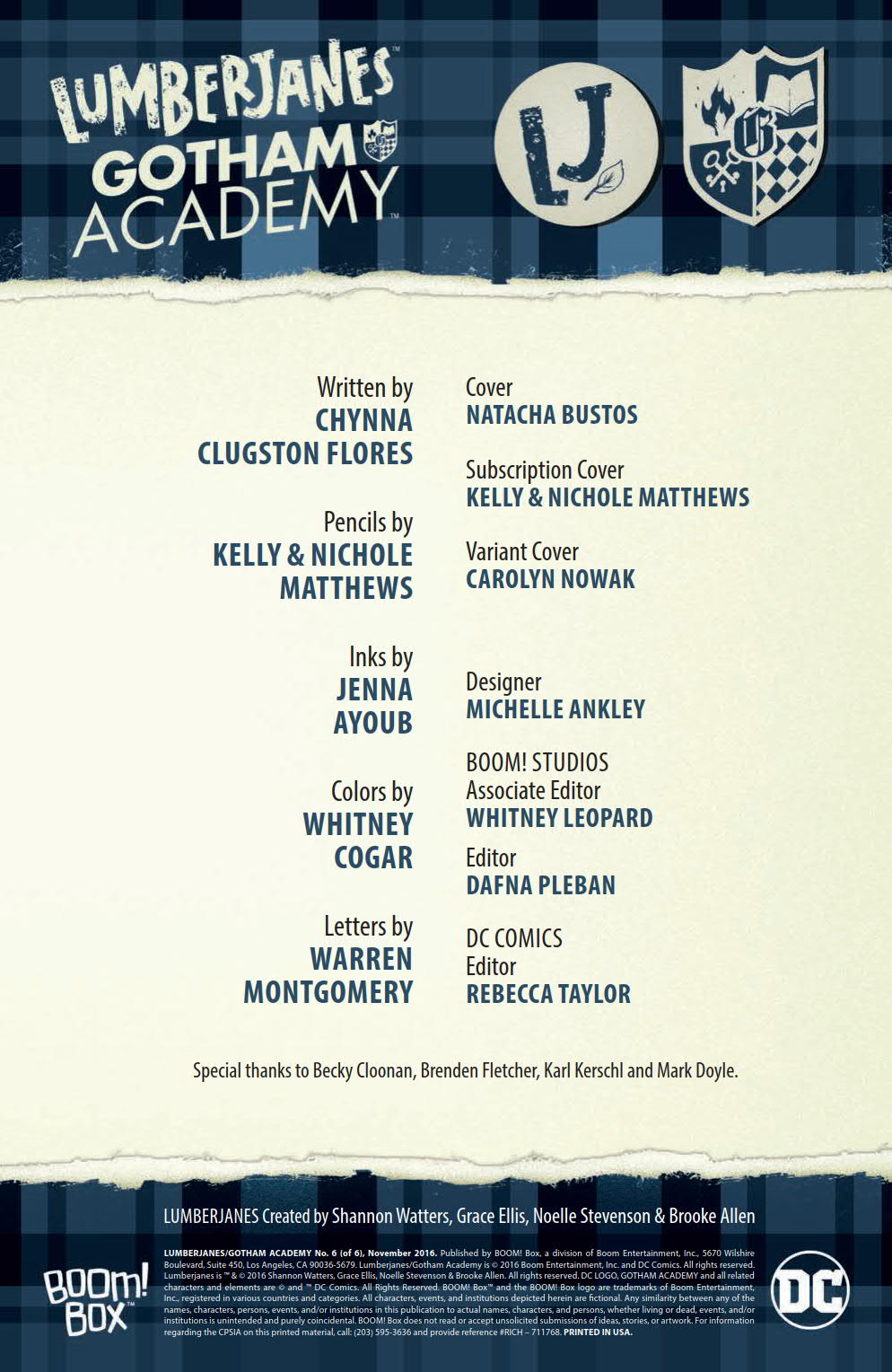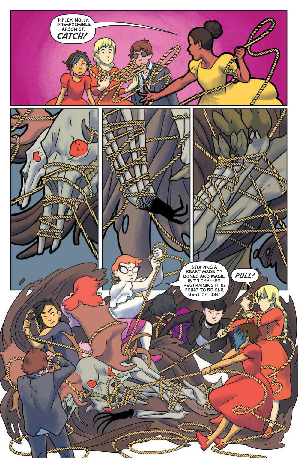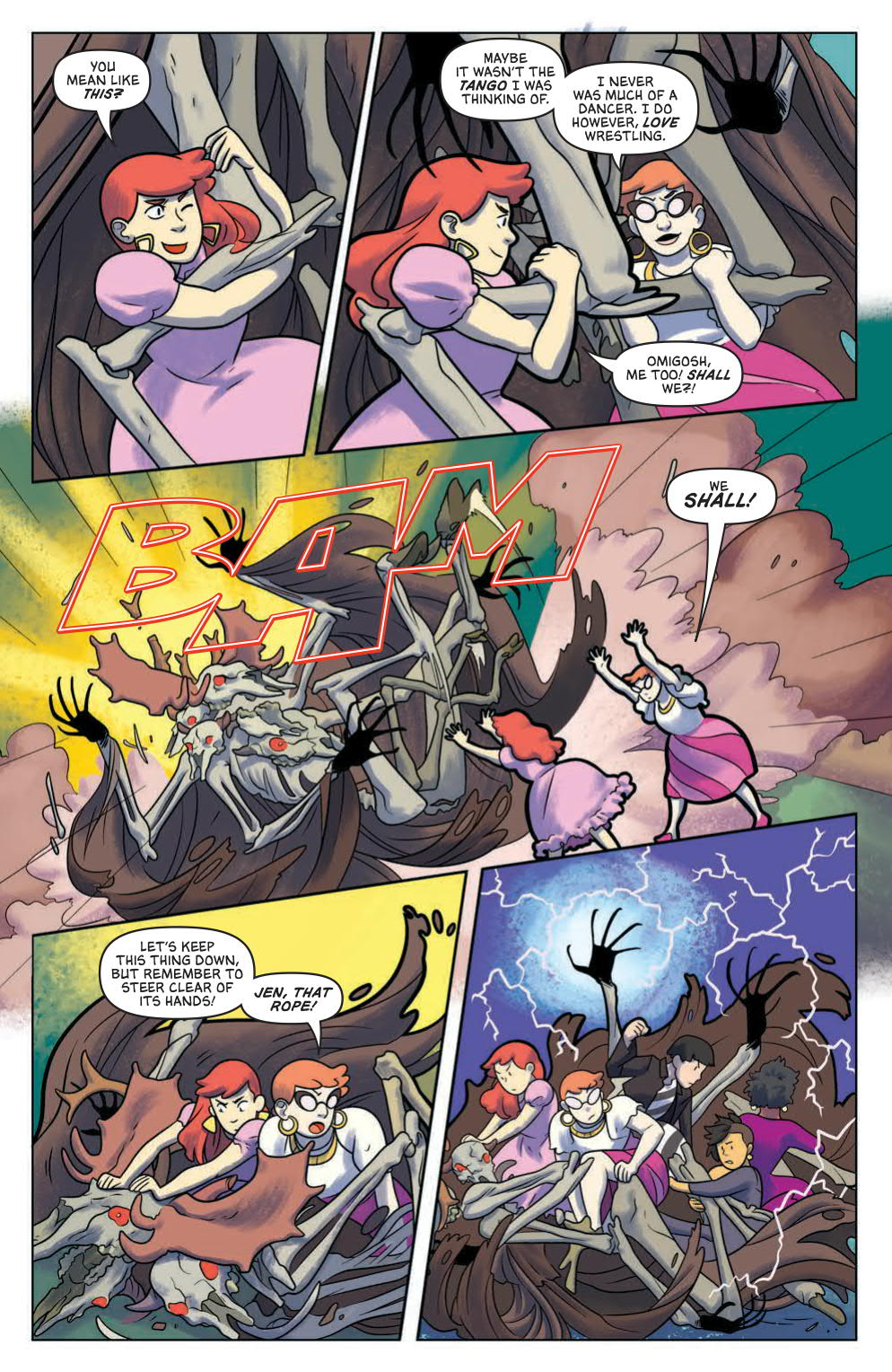 Synopsis: Final issue! The Lumberjanes and Gotham Academy kids have finally got to the truth of things, but is it too late to fix the spell? If they break it then what happens to everyone ensnared…and what will happen to Louise?