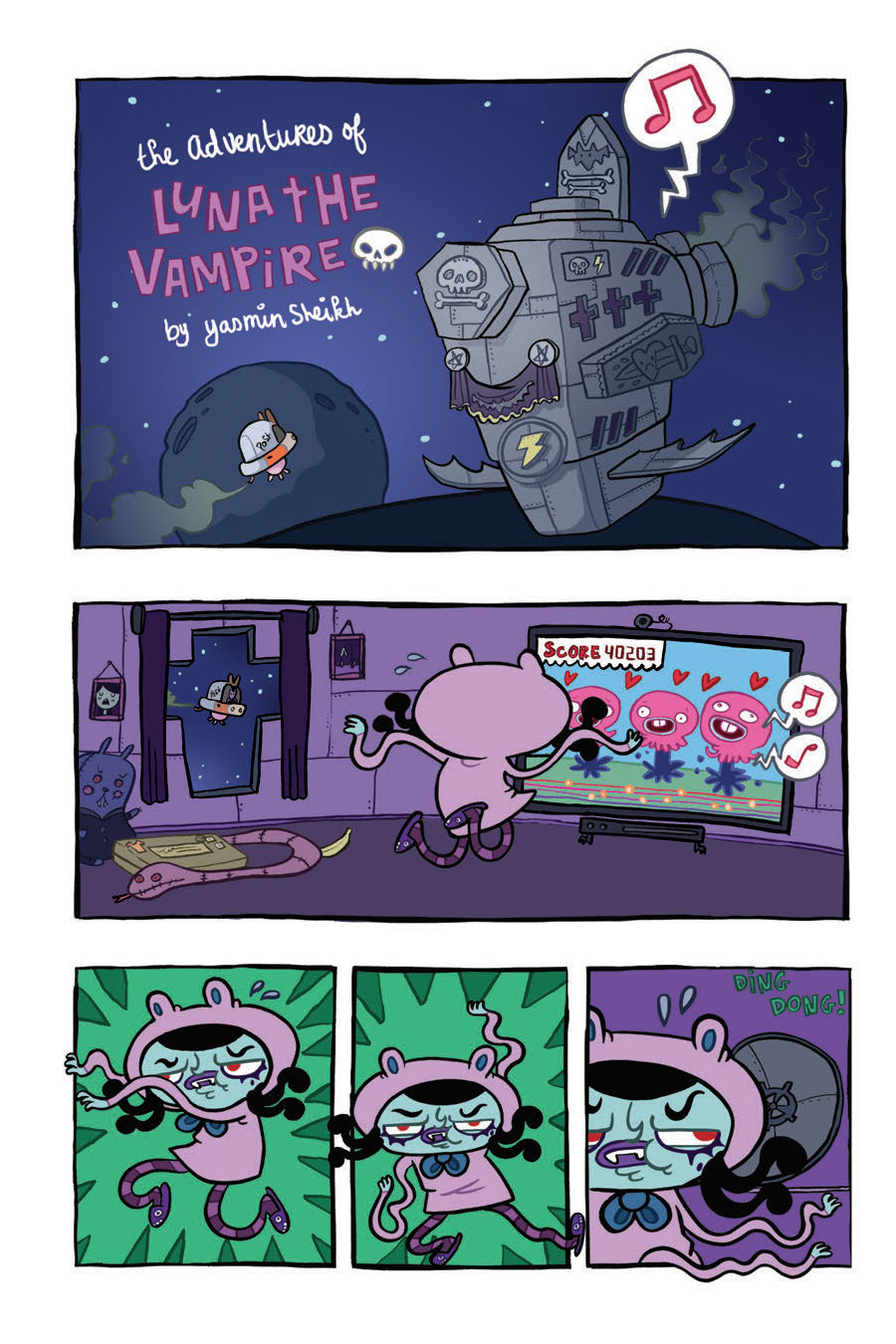 Ever wondered how it would be if outer space was populated by monsters? LOOK NO FURTHER, as this is the AMAZING everyday life of Luna the Vampire. Jam-packed with awesome adventures, crazy faces, zombie postmen, AND SPACE. By the power of the giant floating god-heads, don’t miss out!