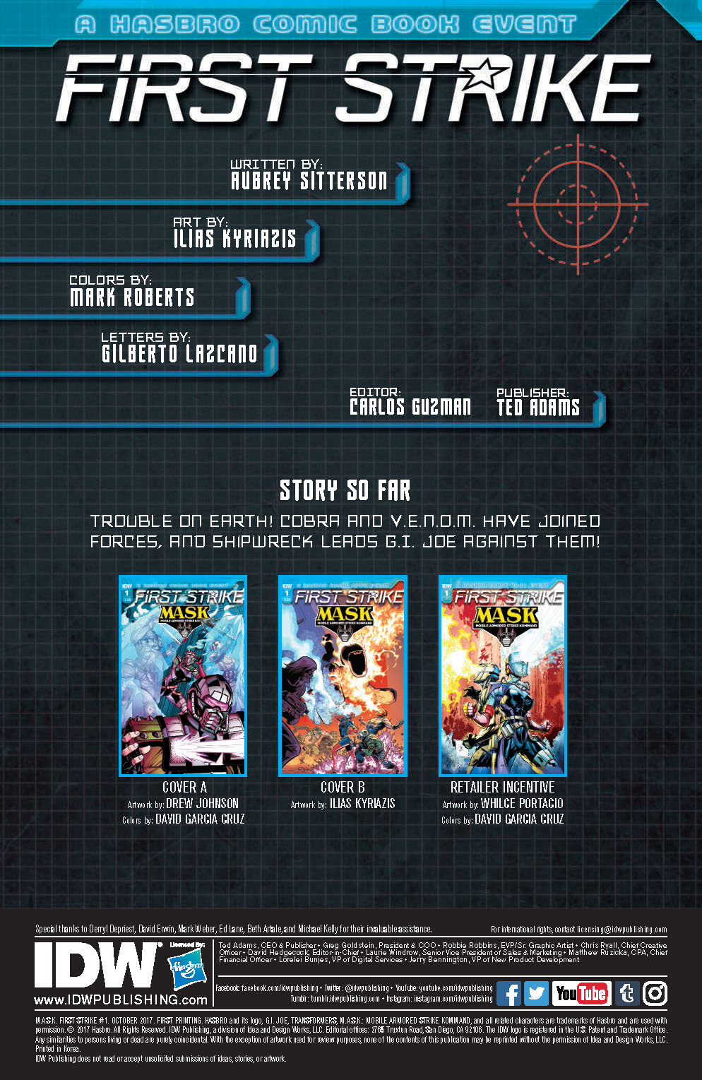 - The second part of G.I. Joe and M.A.S.K.’s story—continued from last month’s G.I. Joe: First Strike #1!