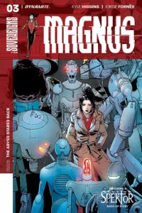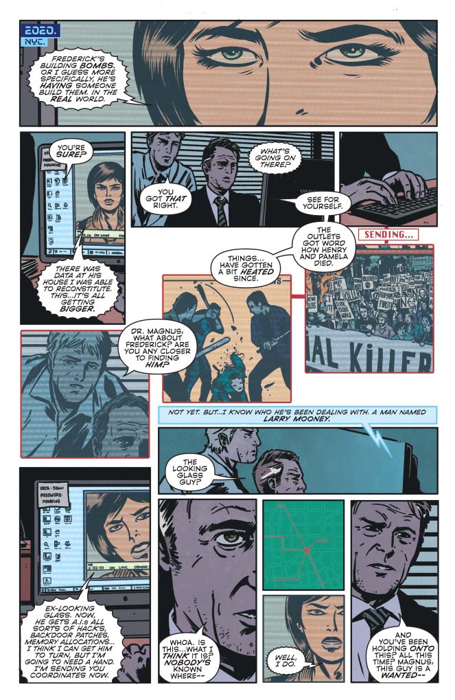 Magnus confronts her own personal demons as she visits a shady acquaintance – someone who knows her from back when she was better known as Magnus: Robot Hunter! – as the past and present collide while she’s searching for a lead to track down her prey: a deadly, homicidal AI who’s still on the loose!
